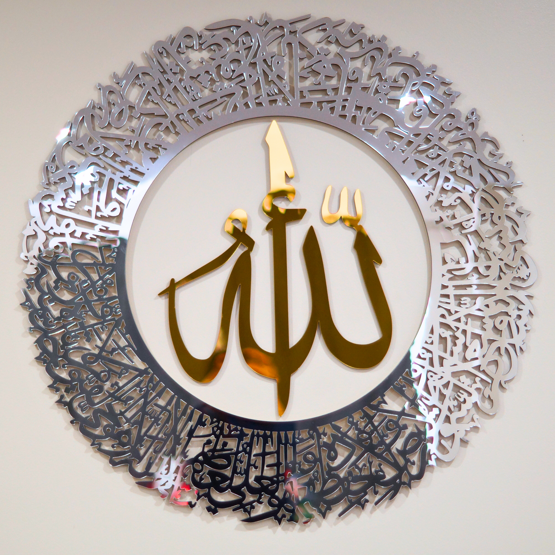 Ayatul Kursi Wall Art with Allah in the Center With Silver & Gold Mirror Finish (90 cm x 90 cm)