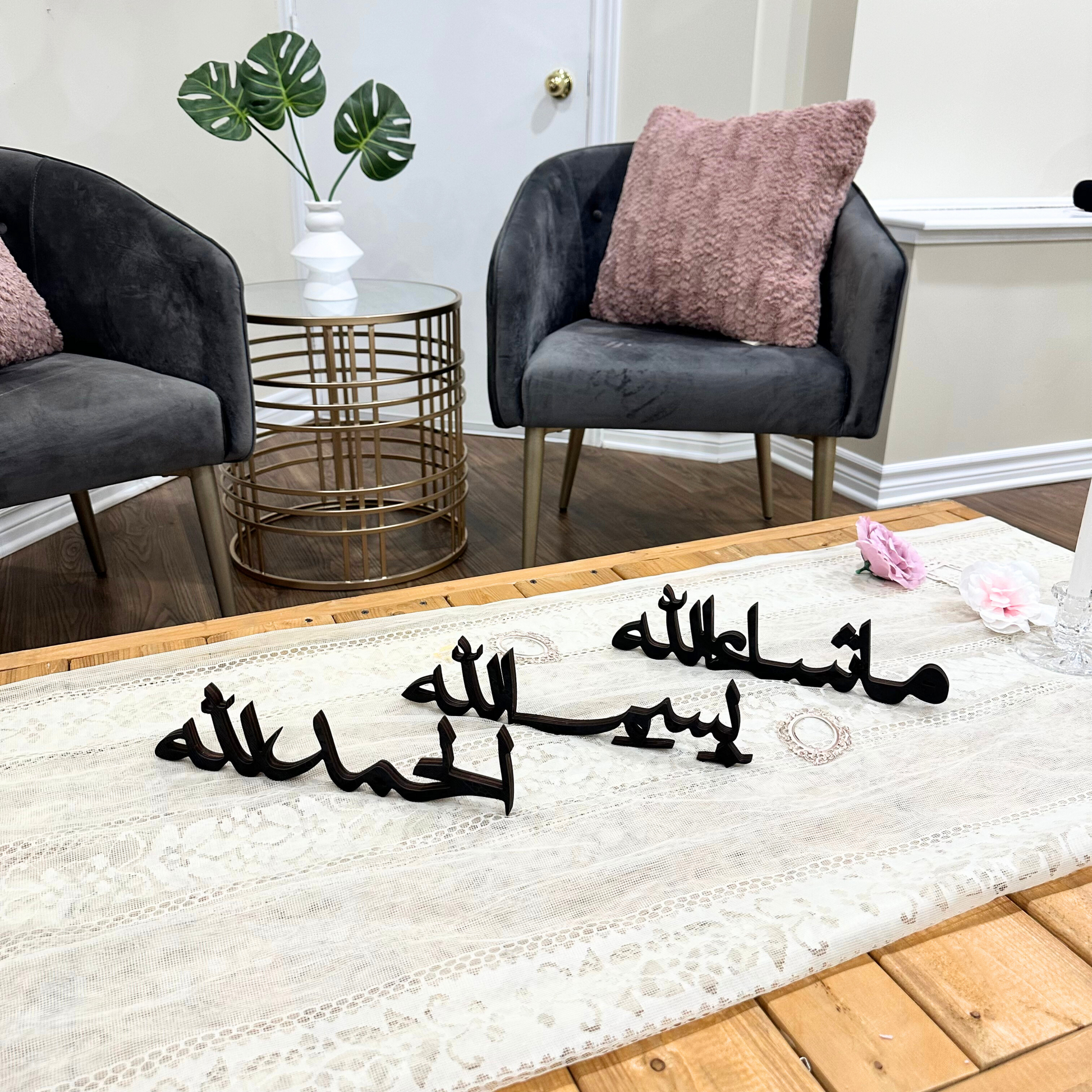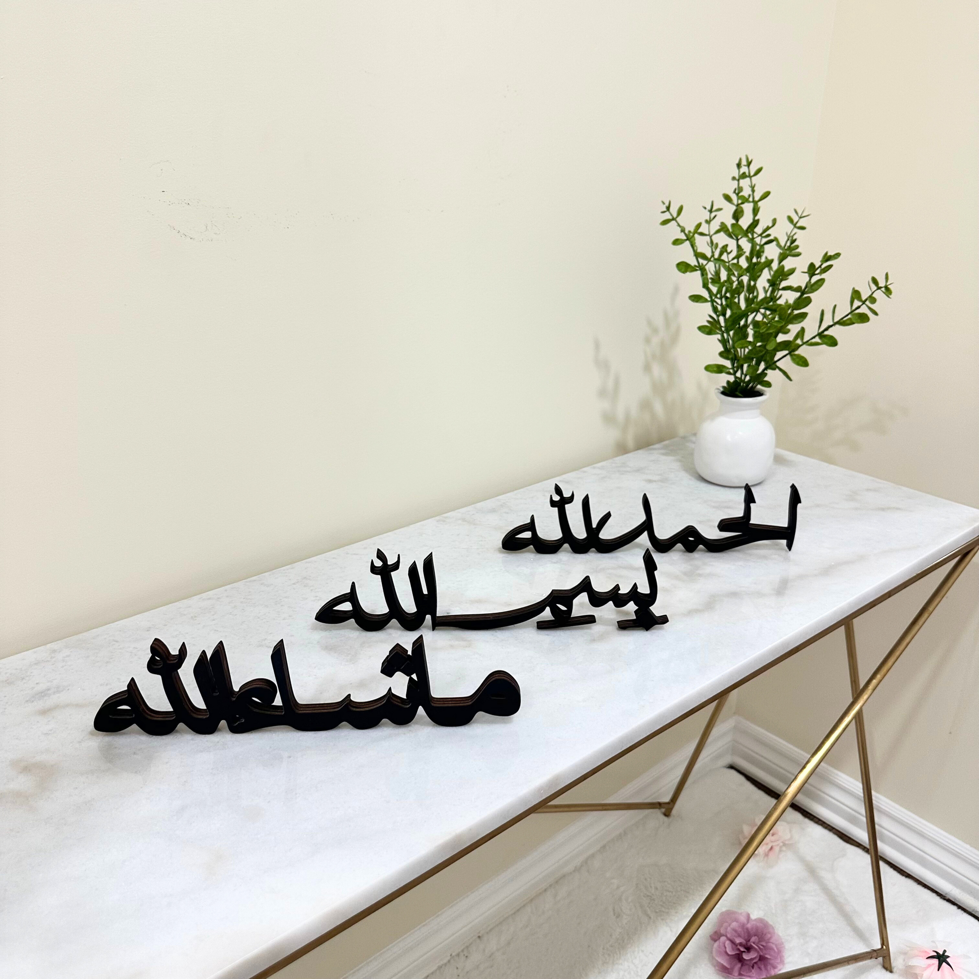 Stunning Black Alhamdulillah, Bismillah, Mashallah Calligraphy Table Pieces Set of 3