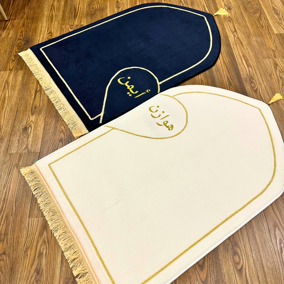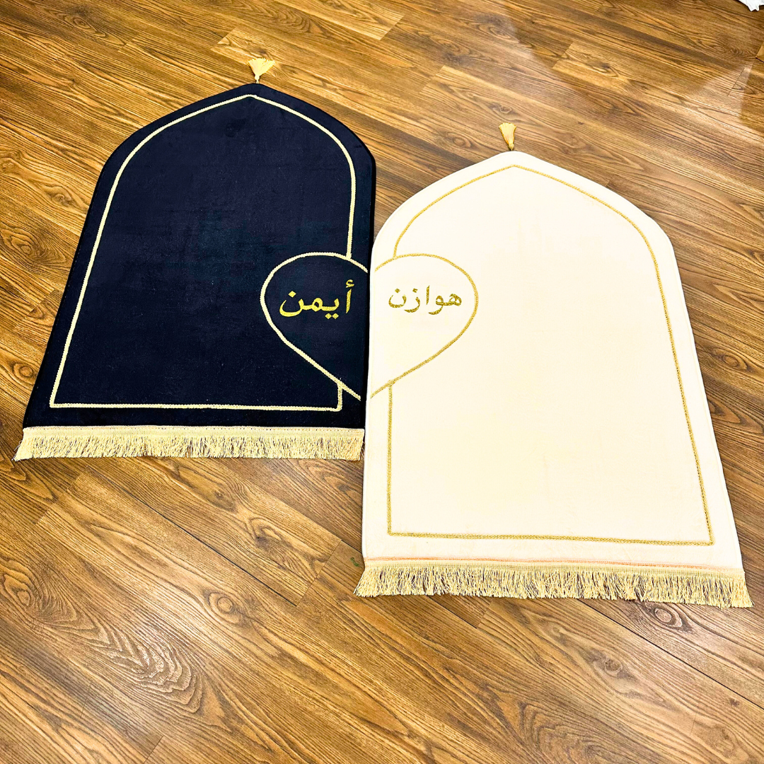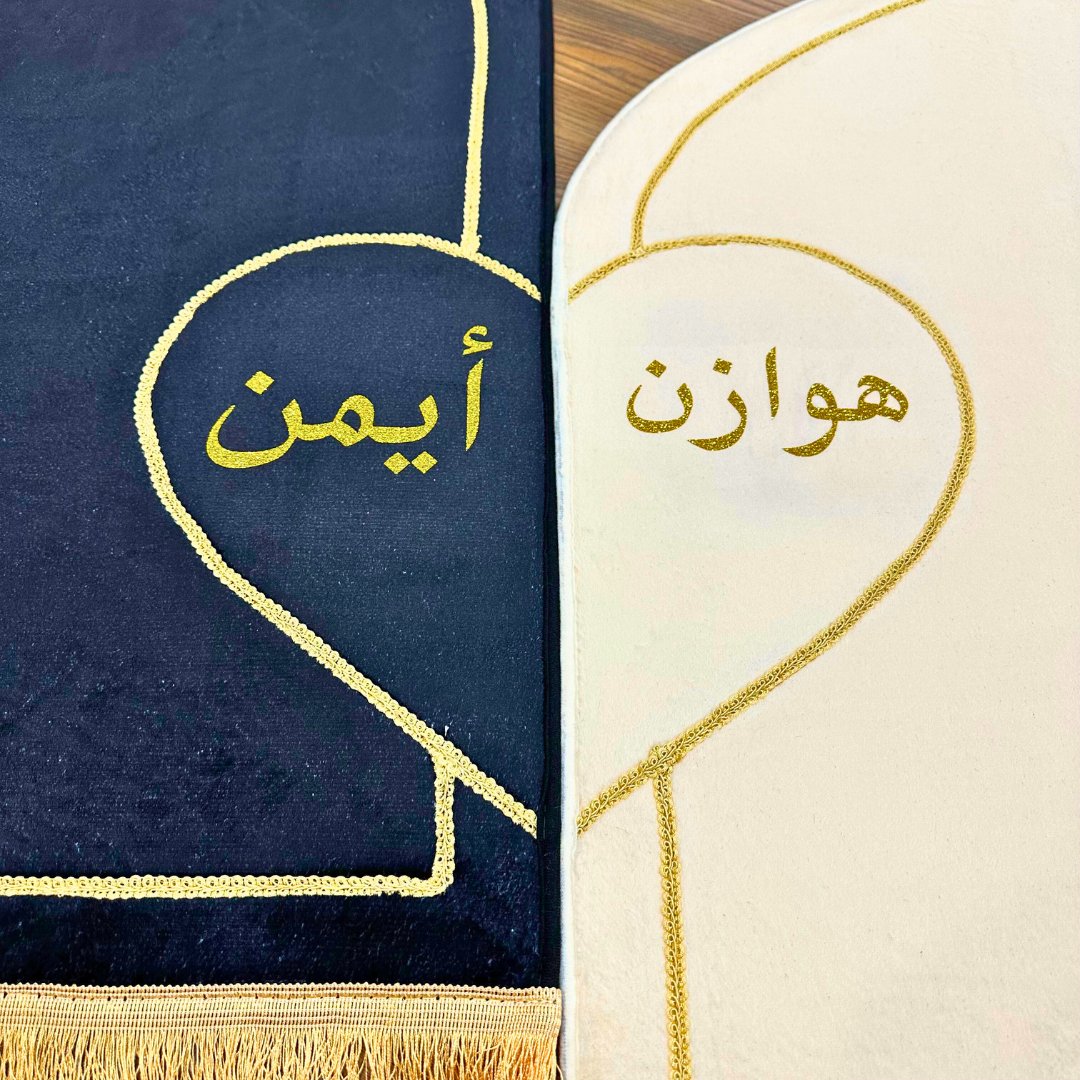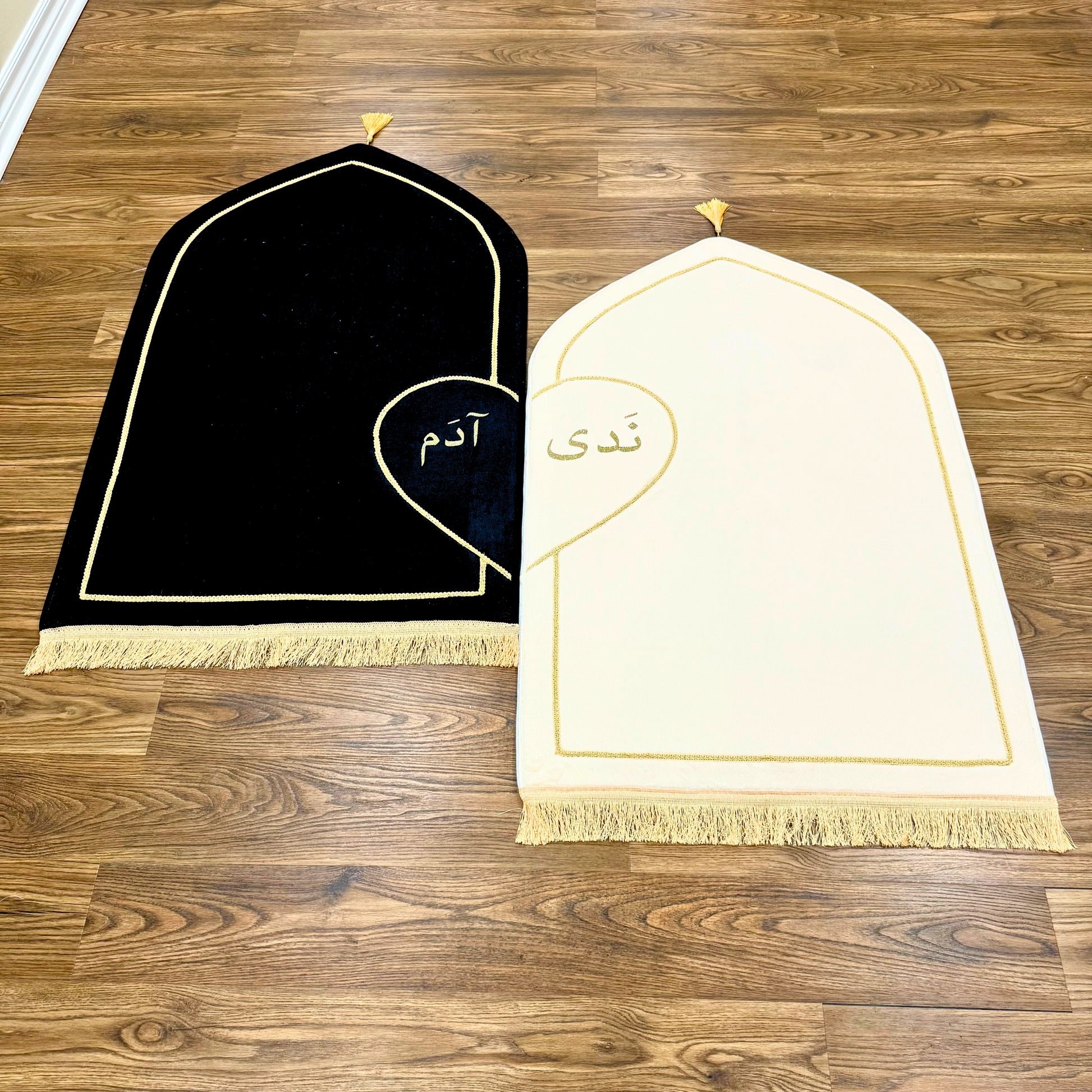 Personalized Couples Muslim Prayer Rugs Set of 2 (Thick Cushioning and Soft Material)
