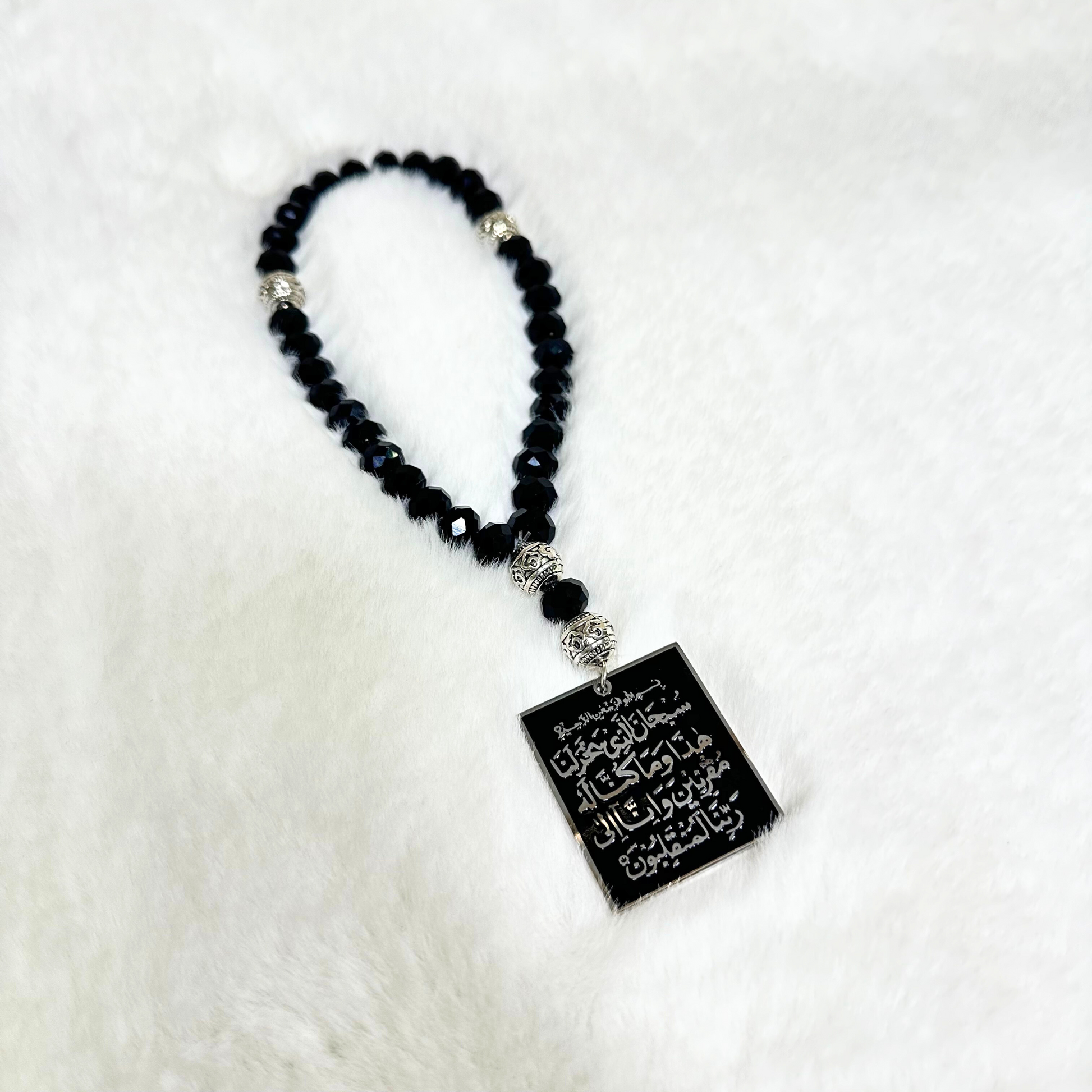 Infuse every drive with barakah and hifazah through this elegantly crafted car pendant. Featuring Ayat al-Kursi on one side and the Dua for Travelling on the other, this striking pendant is more than decor—it's a spiritual companion on the road.