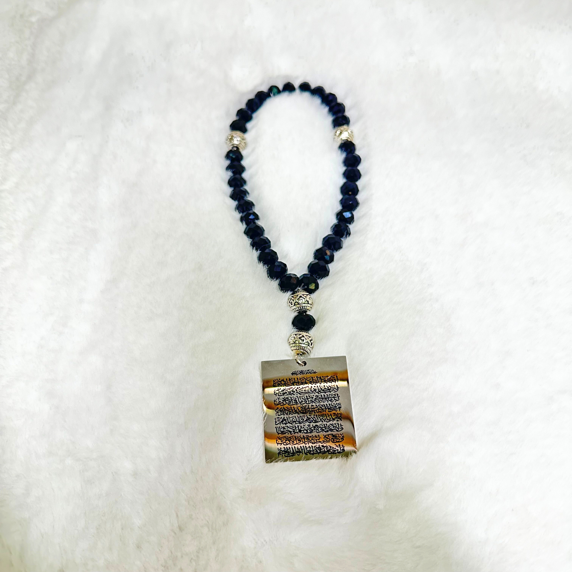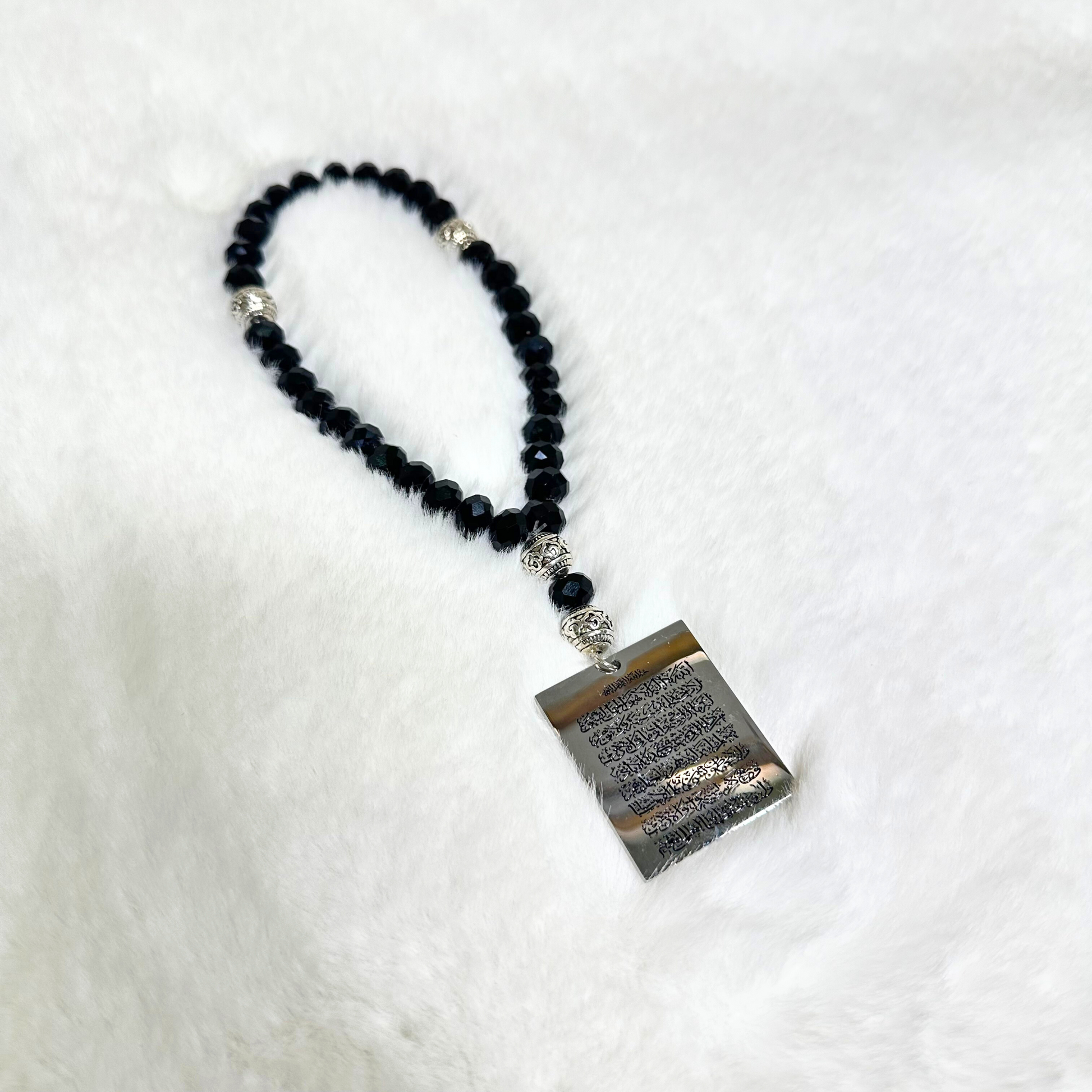 Hanging from a sleek black chain, the black and silver metallic design brings timeless Islamic elegance into your car, keeping you connected to Allah’s protection wherever the road takes you.