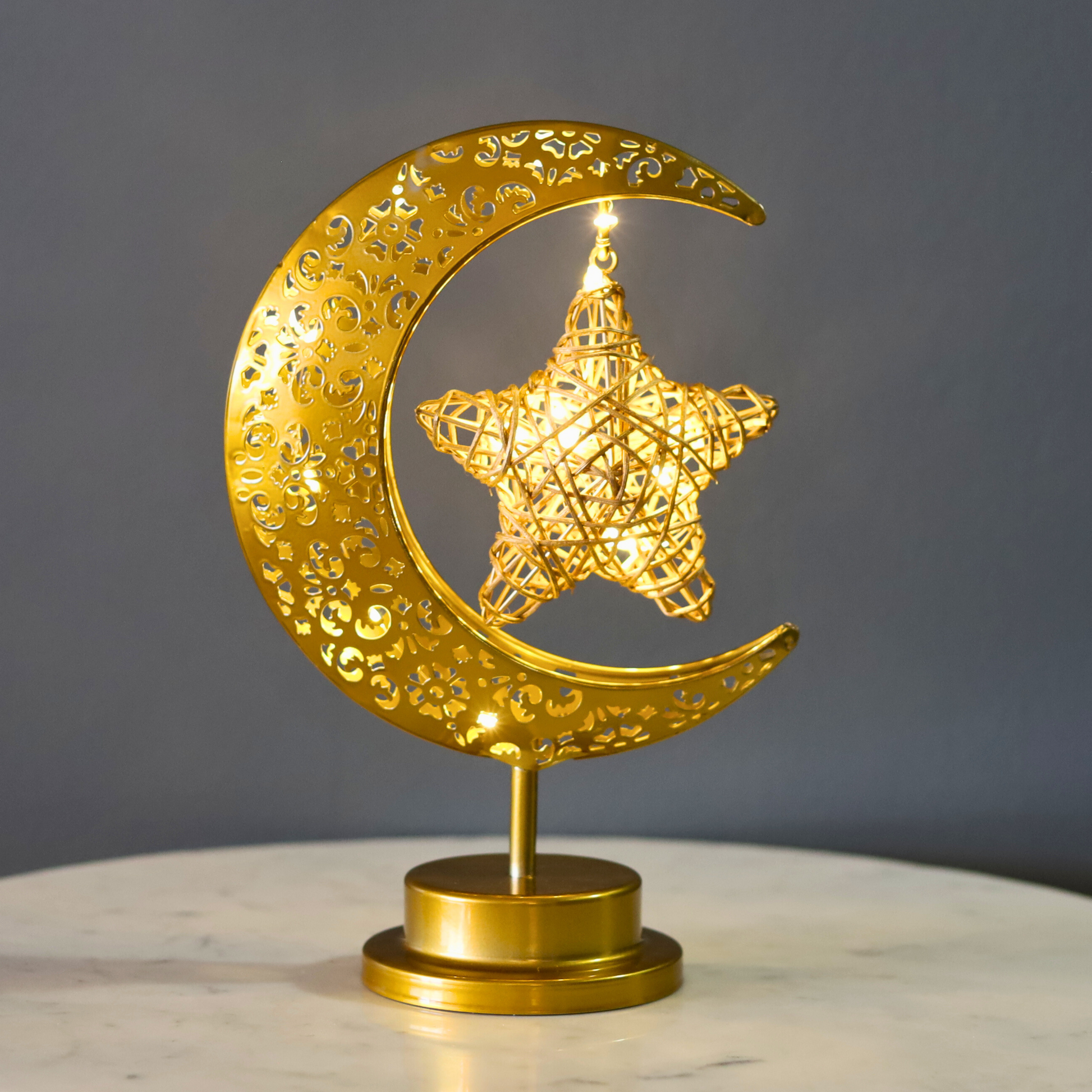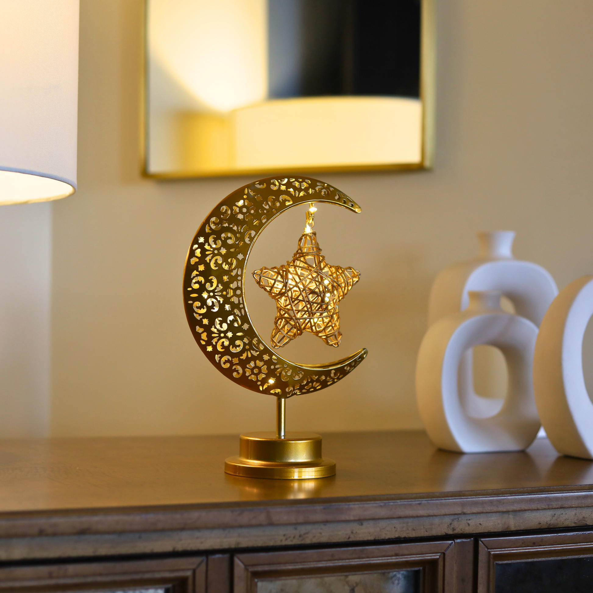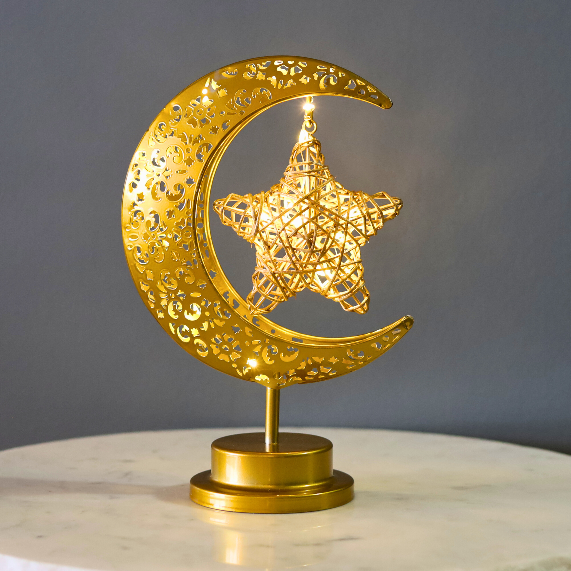 Stunning Gold Crescent Moon & Star LED Metal Lamp