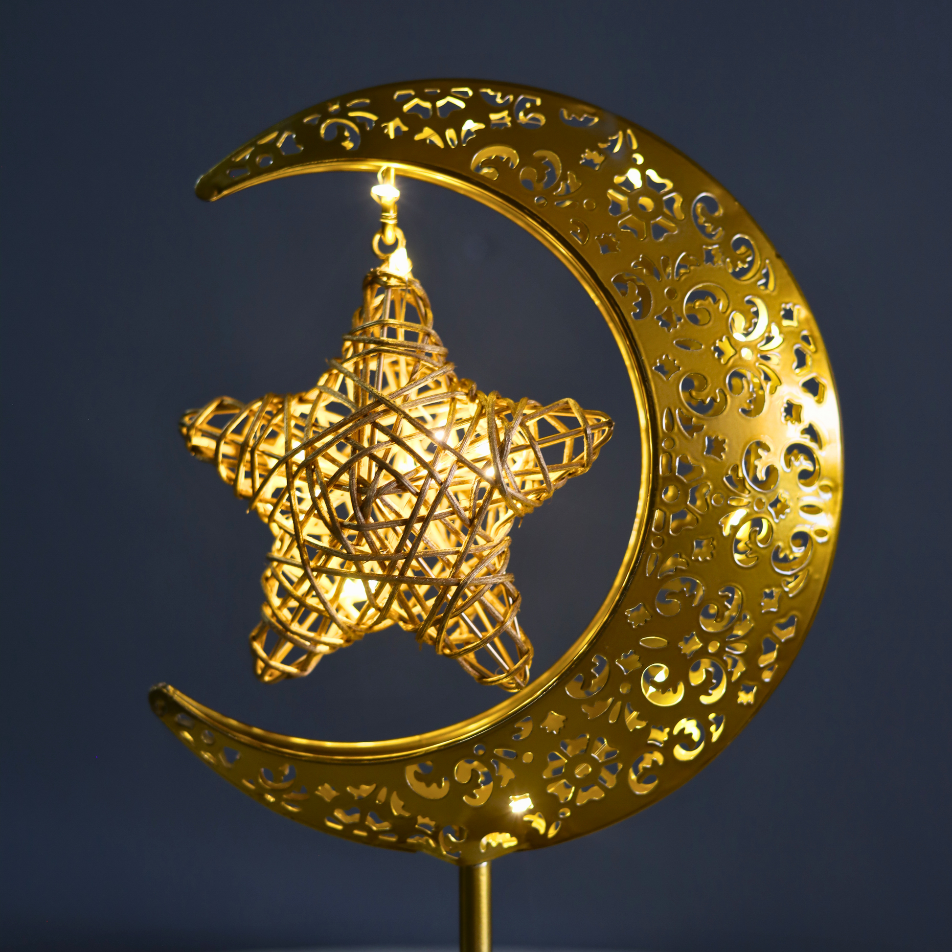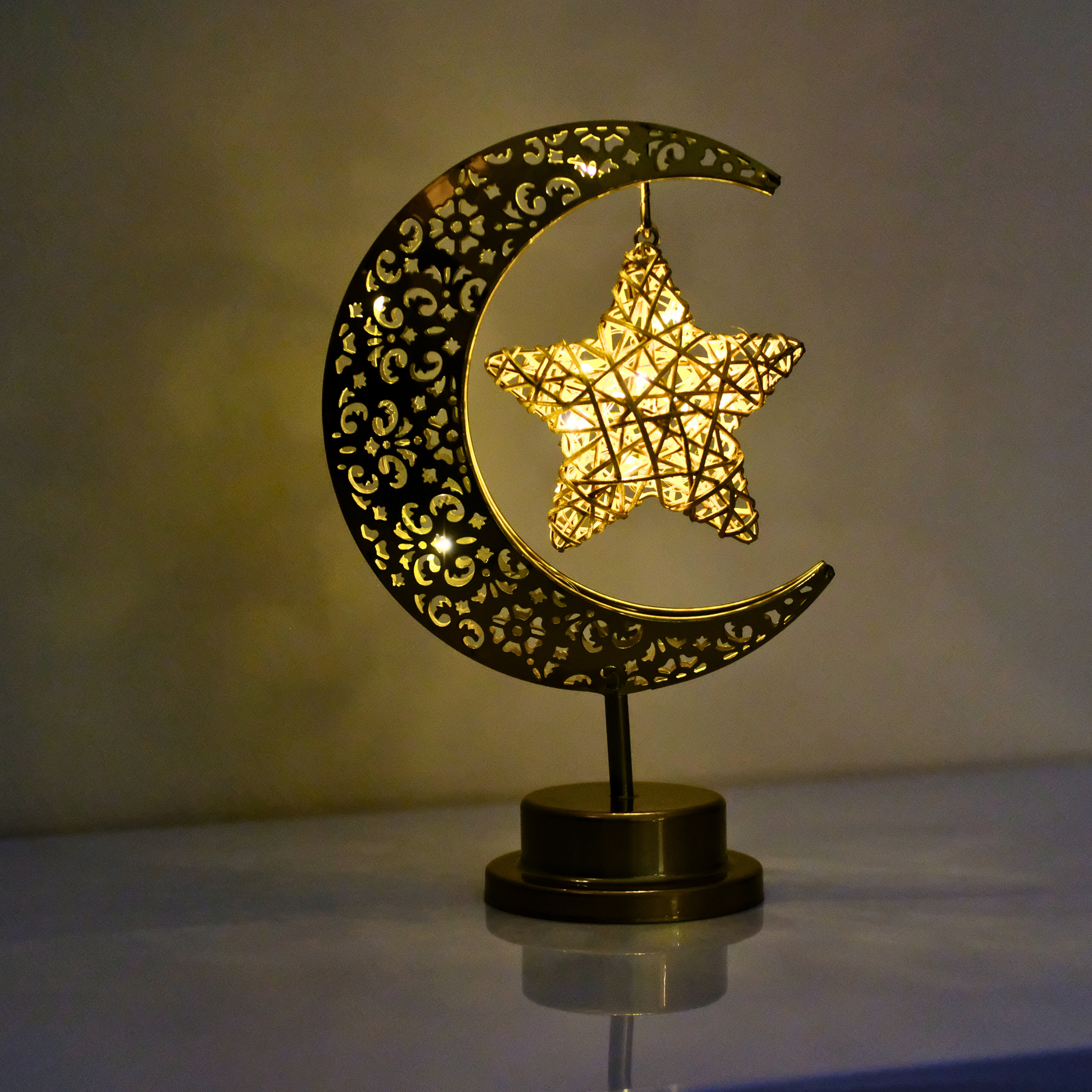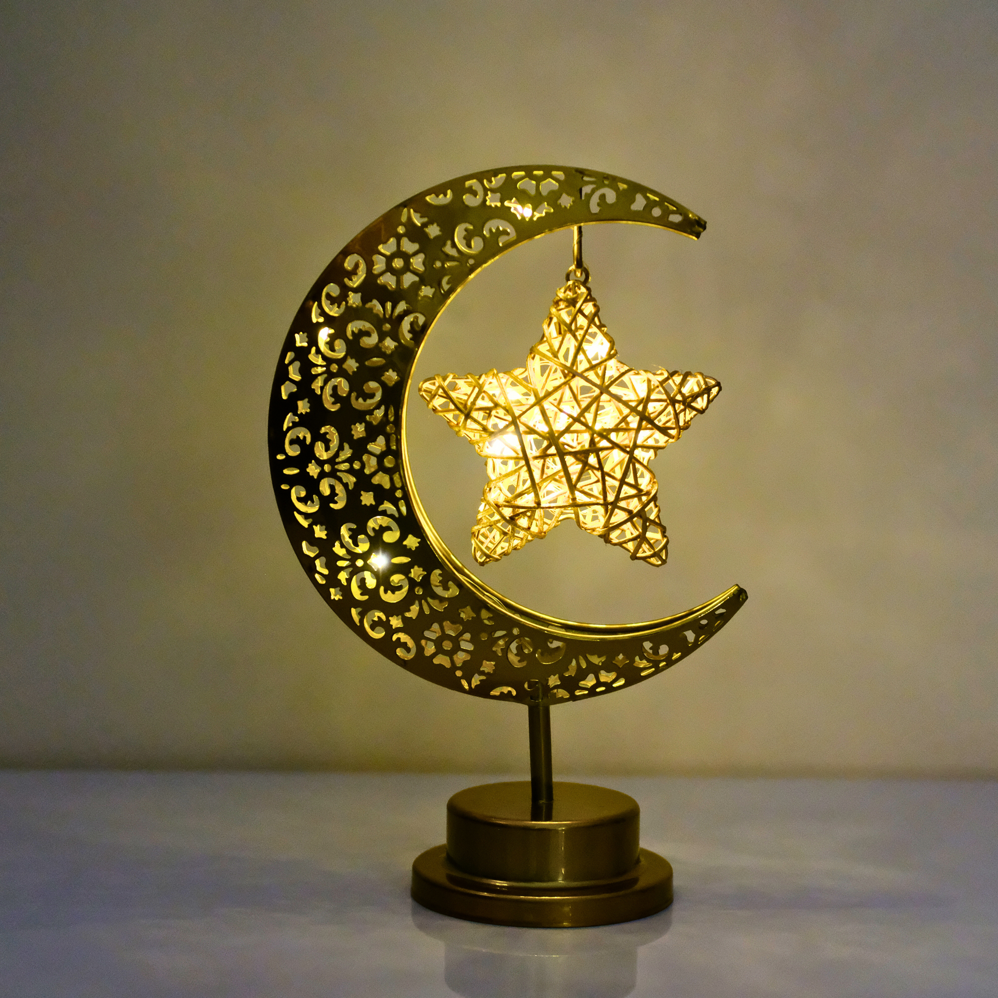 Stunning Gold Crescent Moon & Star LED Metal Lamp