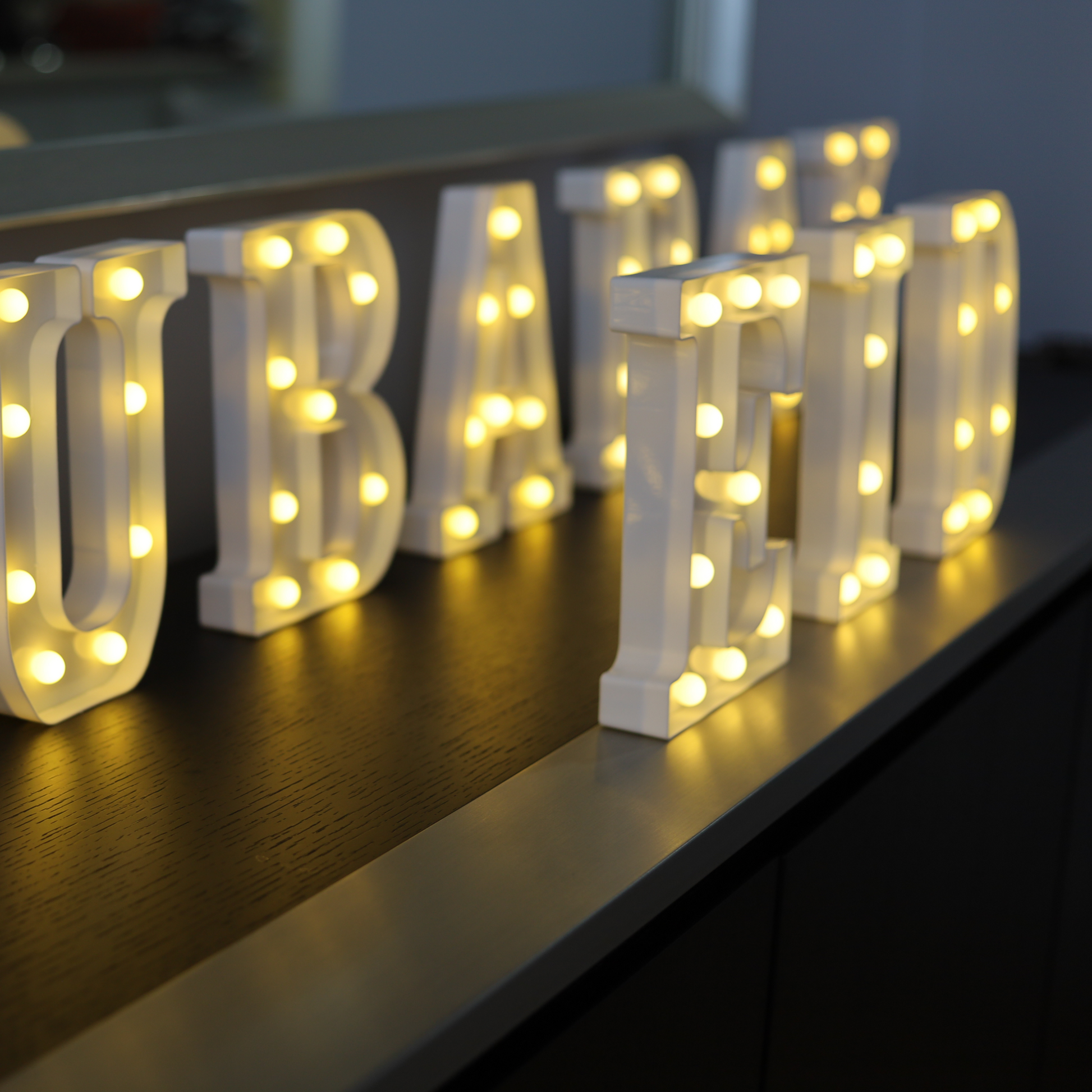 Crafted from high-quality durable plastic and individually powered by 2 AA batteries, each letter is easy to position wherever you like—no cords, no outlets, no hassle. Just glowing, effortless beauty.