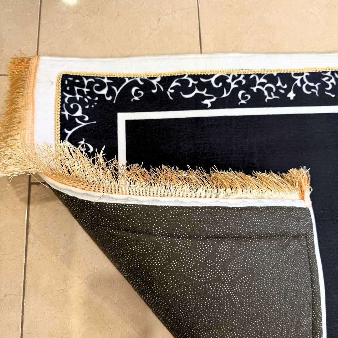 Personalized Elegant Muslim Prayer Rug - Black (Thick Cushioning and Long Size)