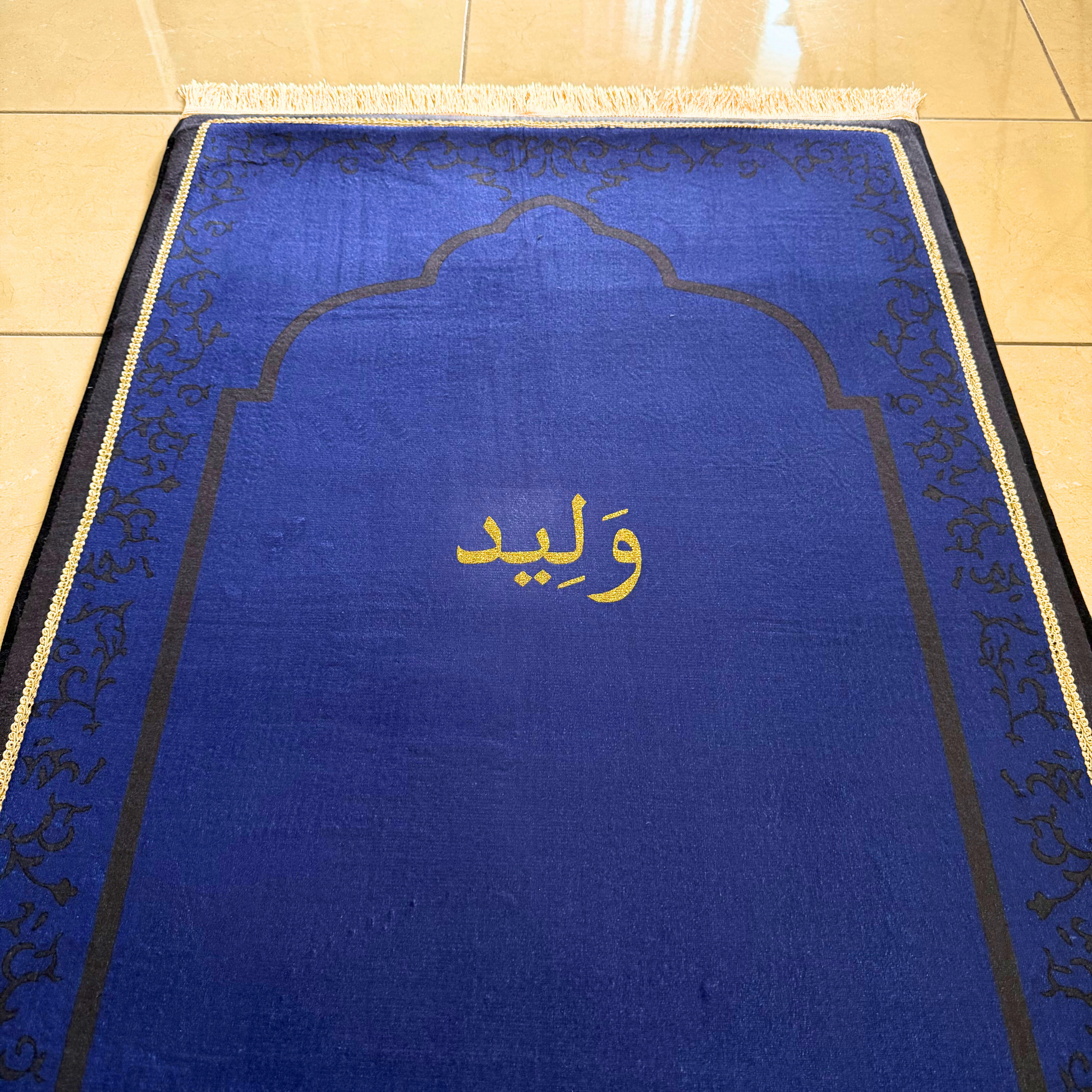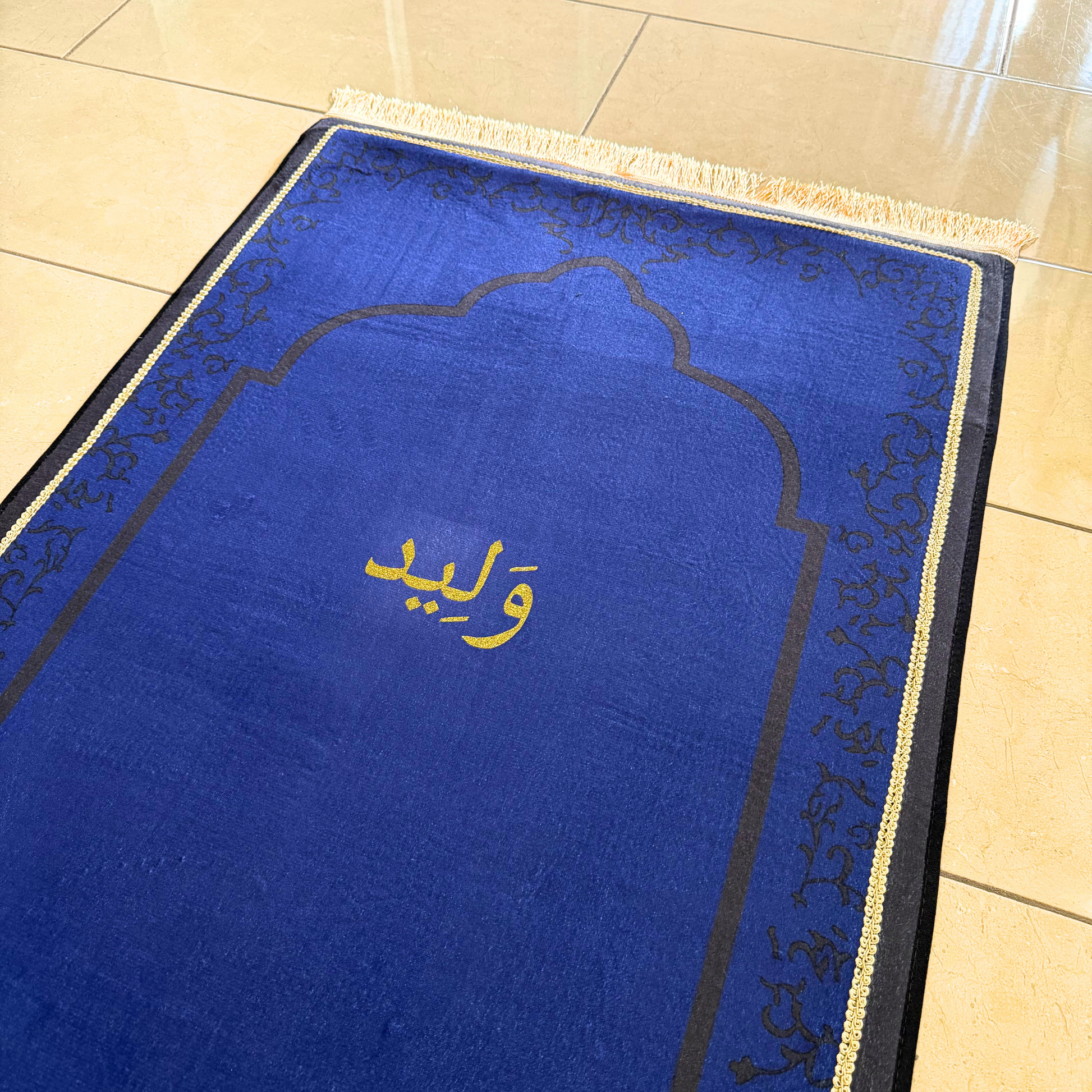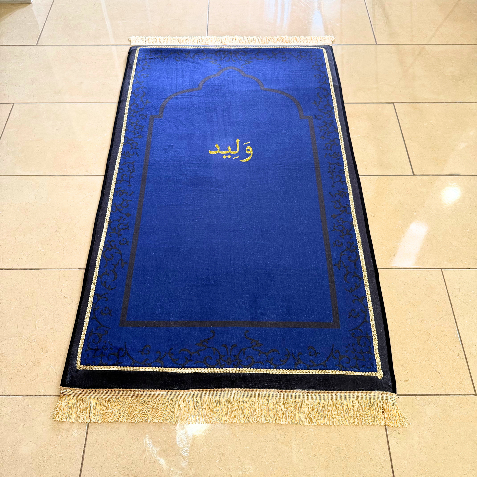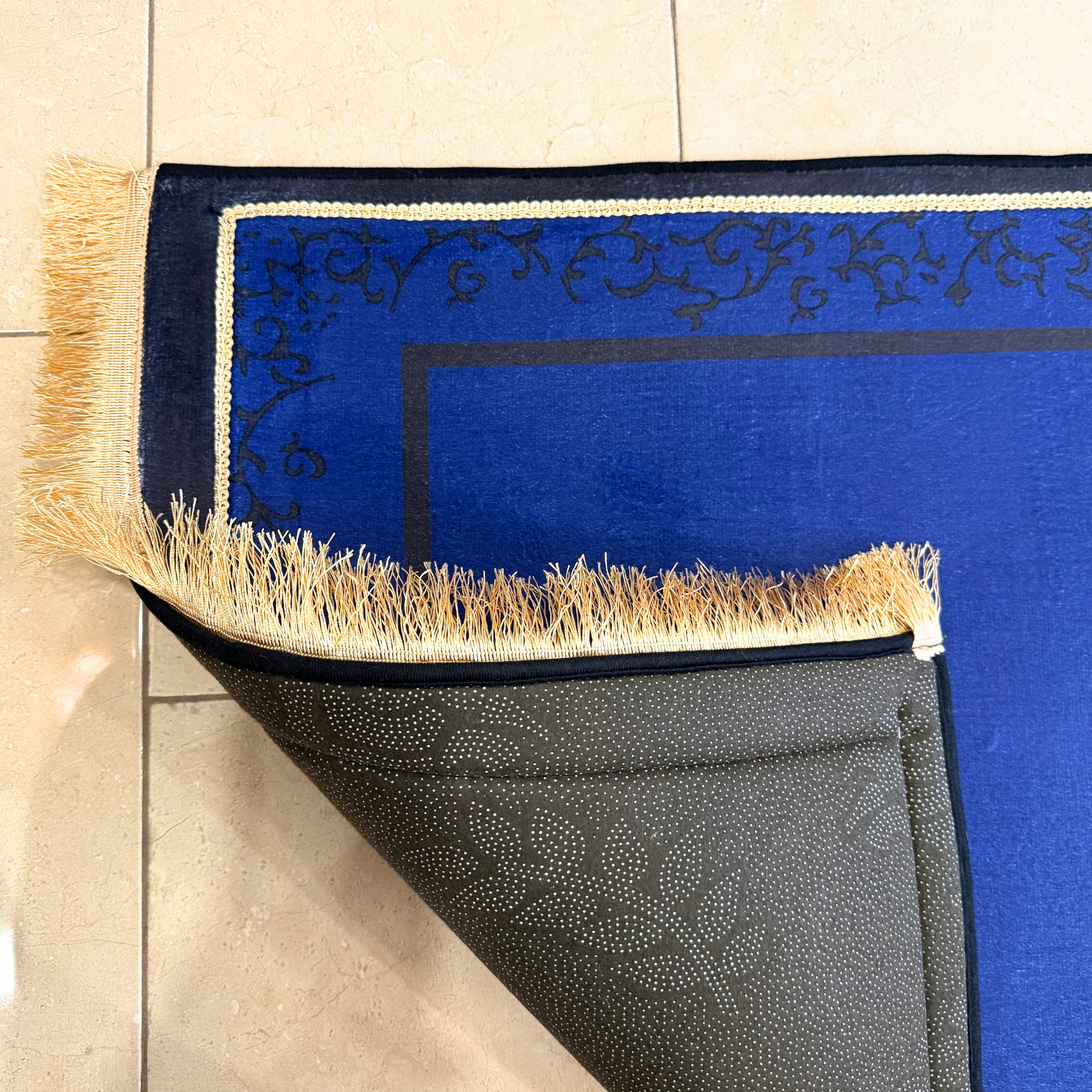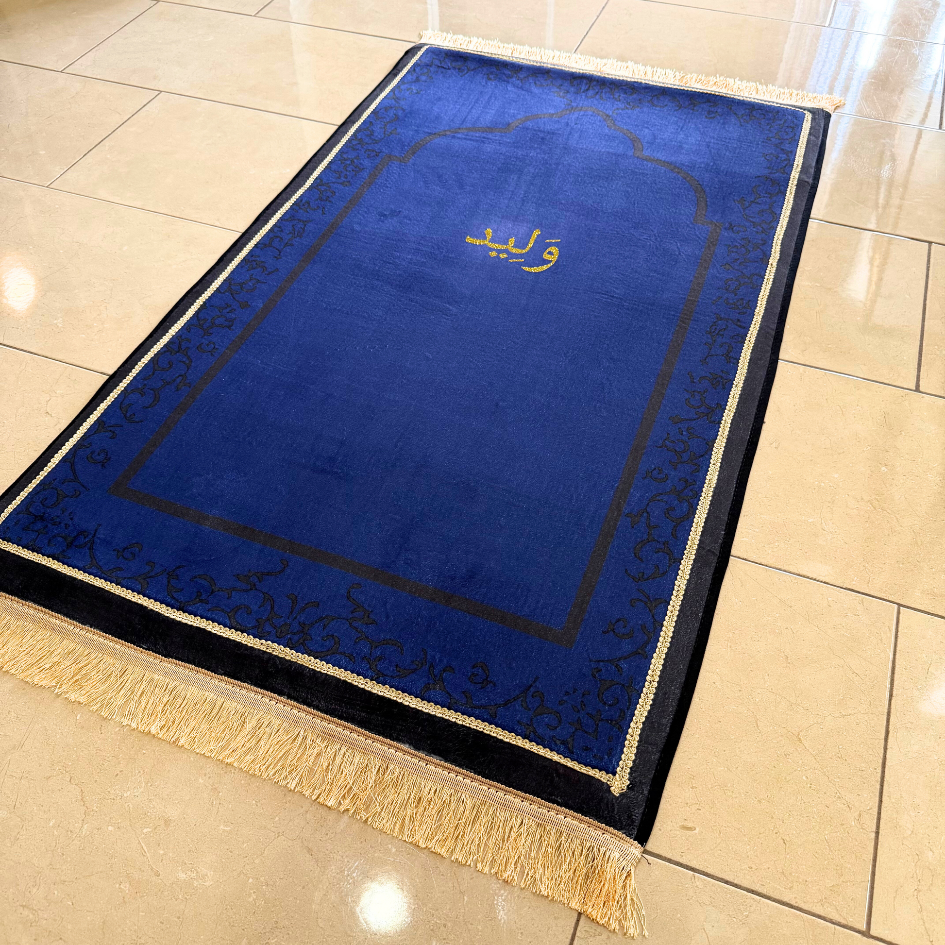 Personalized Elegant Muslim Prayer Rug - Royal Blue (Thick Cushioning and Long Size)