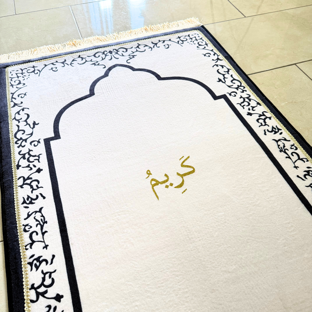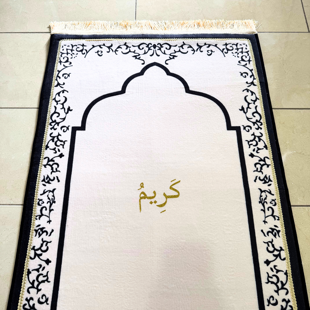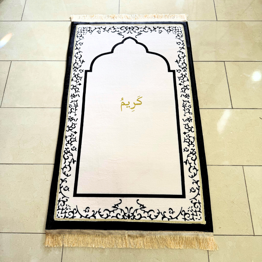 Personalized Elegant Muslim Prayer Rug - Off White (Thick Cushioning and Long Size)
