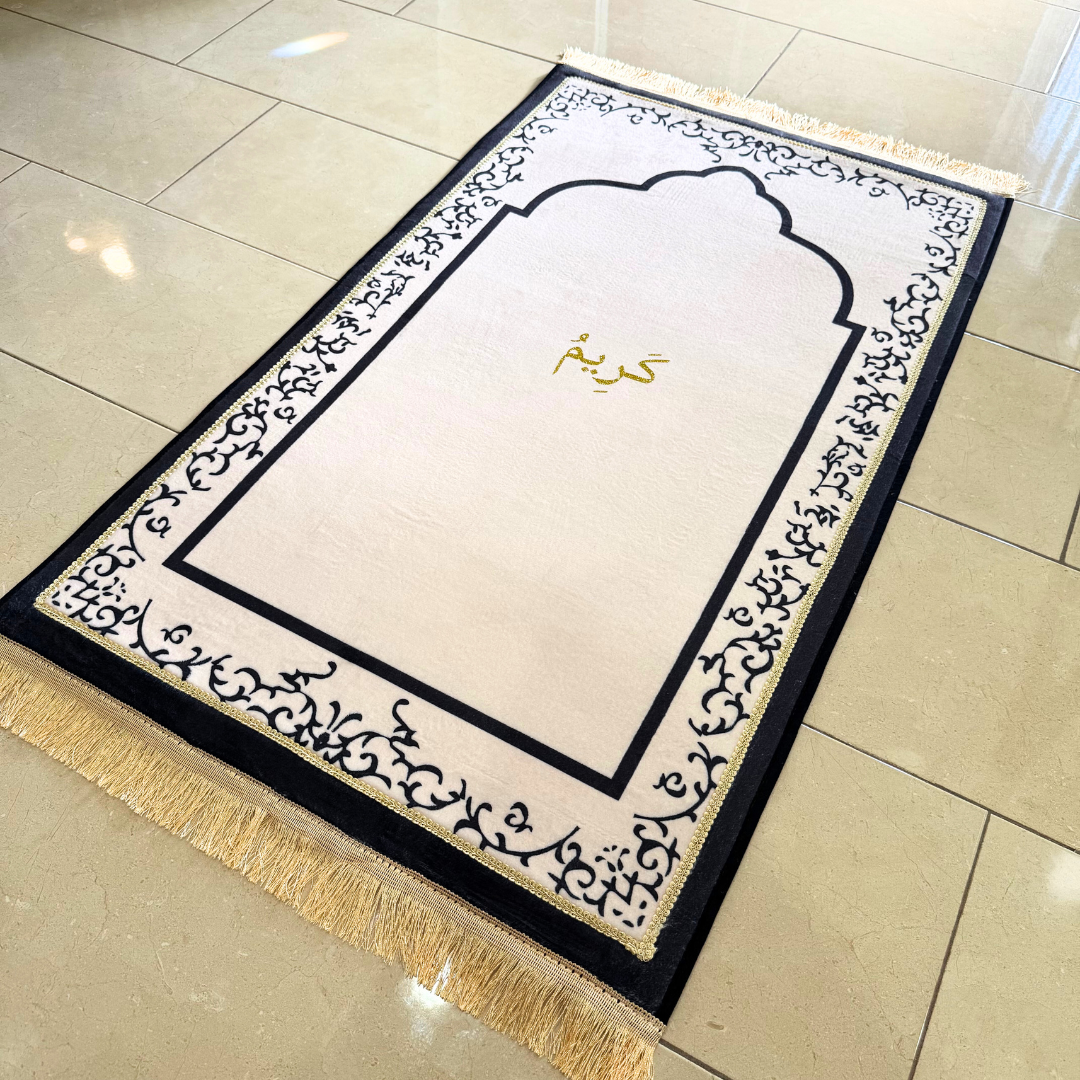 Step into salah with comfort, clarity, and elegance. The Off-White Personalized Mosque-Shaped Prayer Mat is designed to elevate your prayer experience—not only with its beautiful appearance, but with extra-thick padding, soft material, and a personal touch that’s all your own.