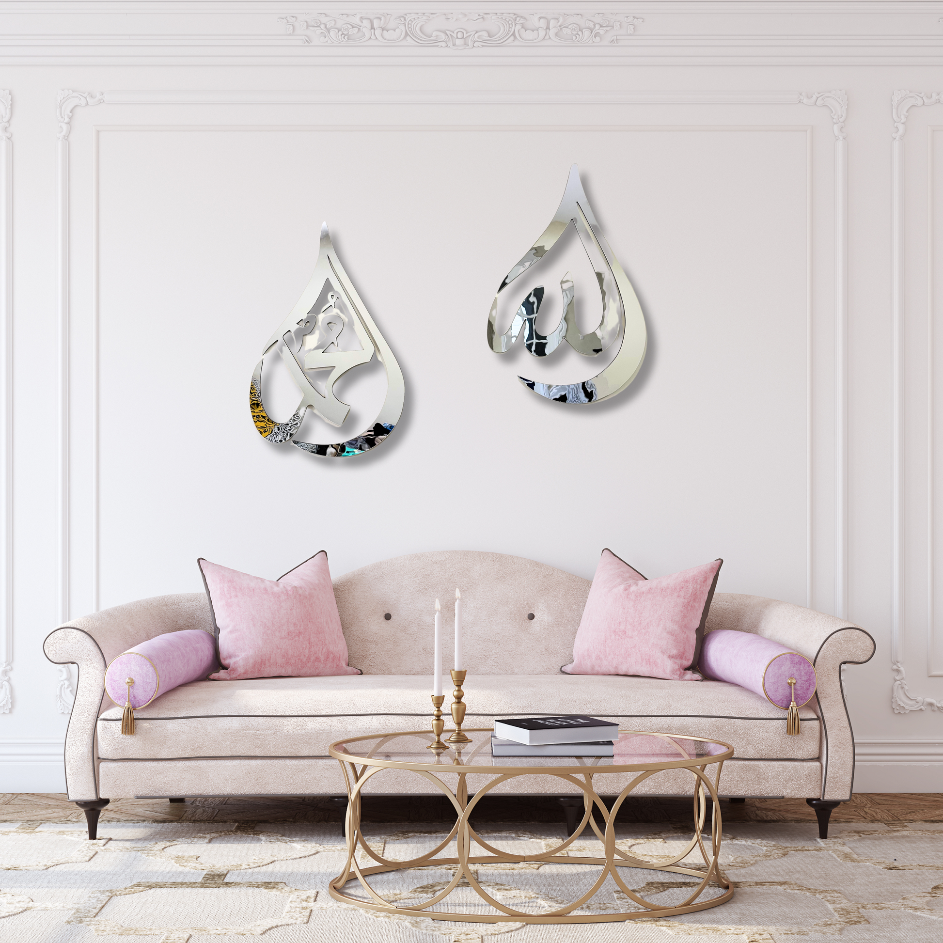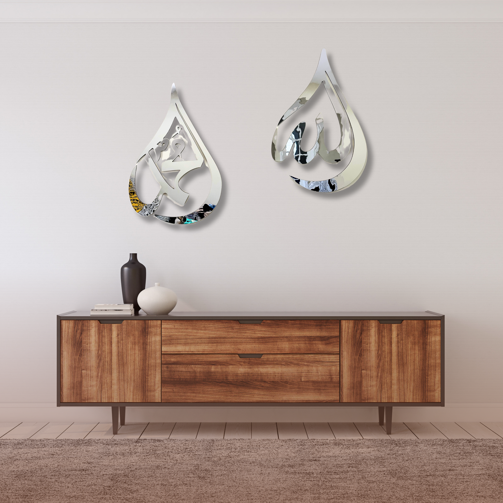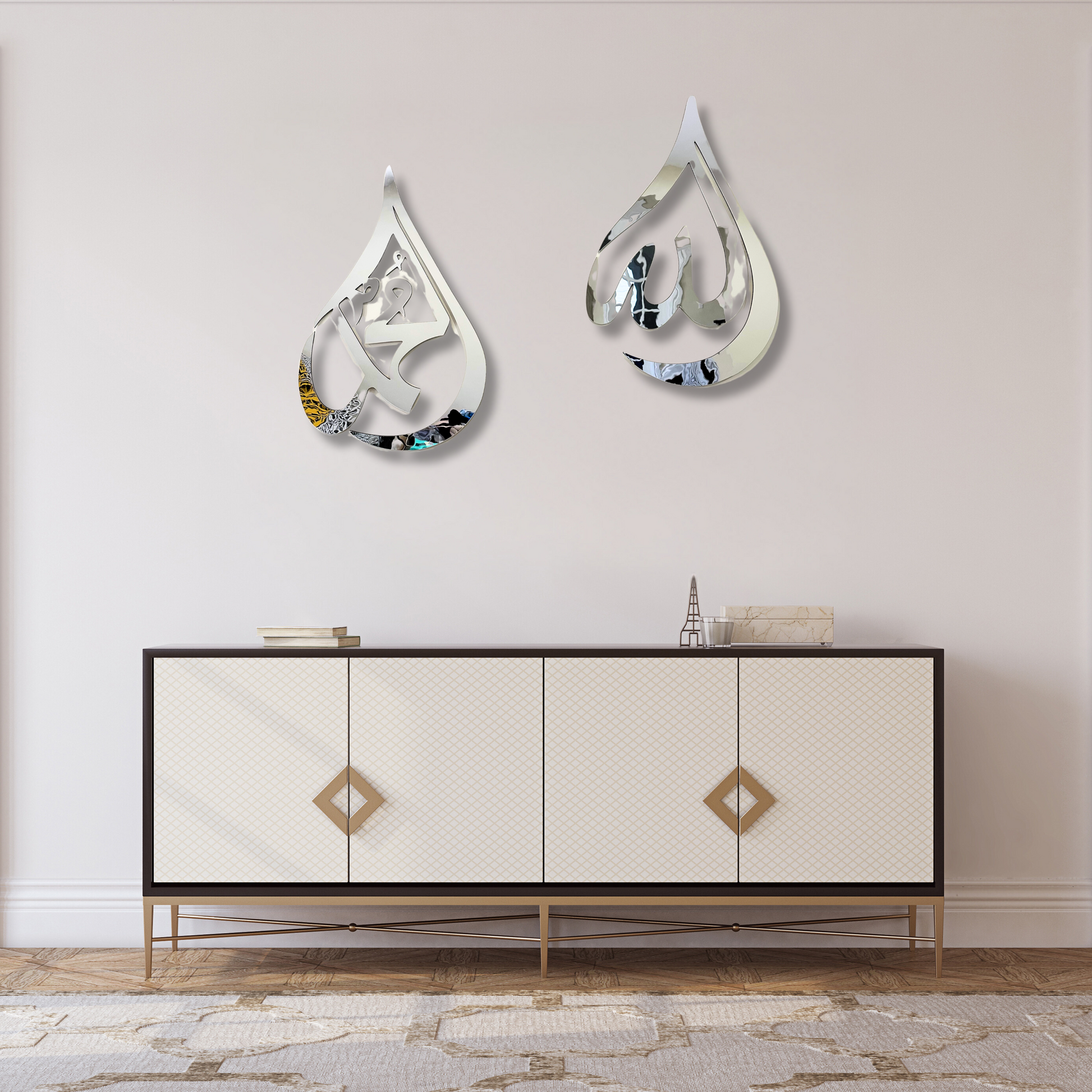 Allah (SAWT) & Prophet Mohammad (PBUH) Silver Wall Decor Set of 2