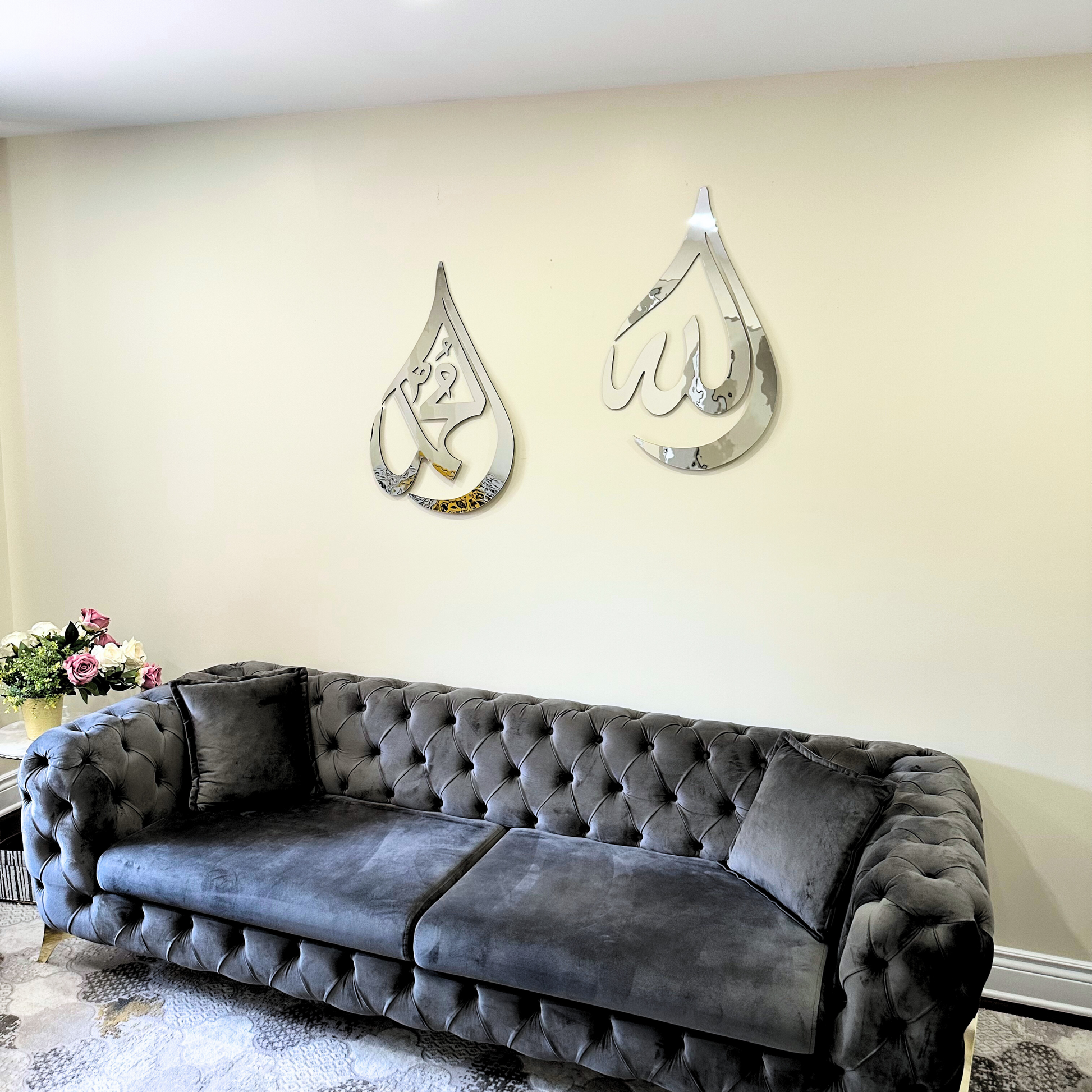 Each piece is crafted in shimmering silver mirror acrylic, mounted on a thick hardwood base that feels solid and premium to the touch. Whether placed in your prayer space, hallway, or living area, this set adds light, barakah, and elegance that lasts.