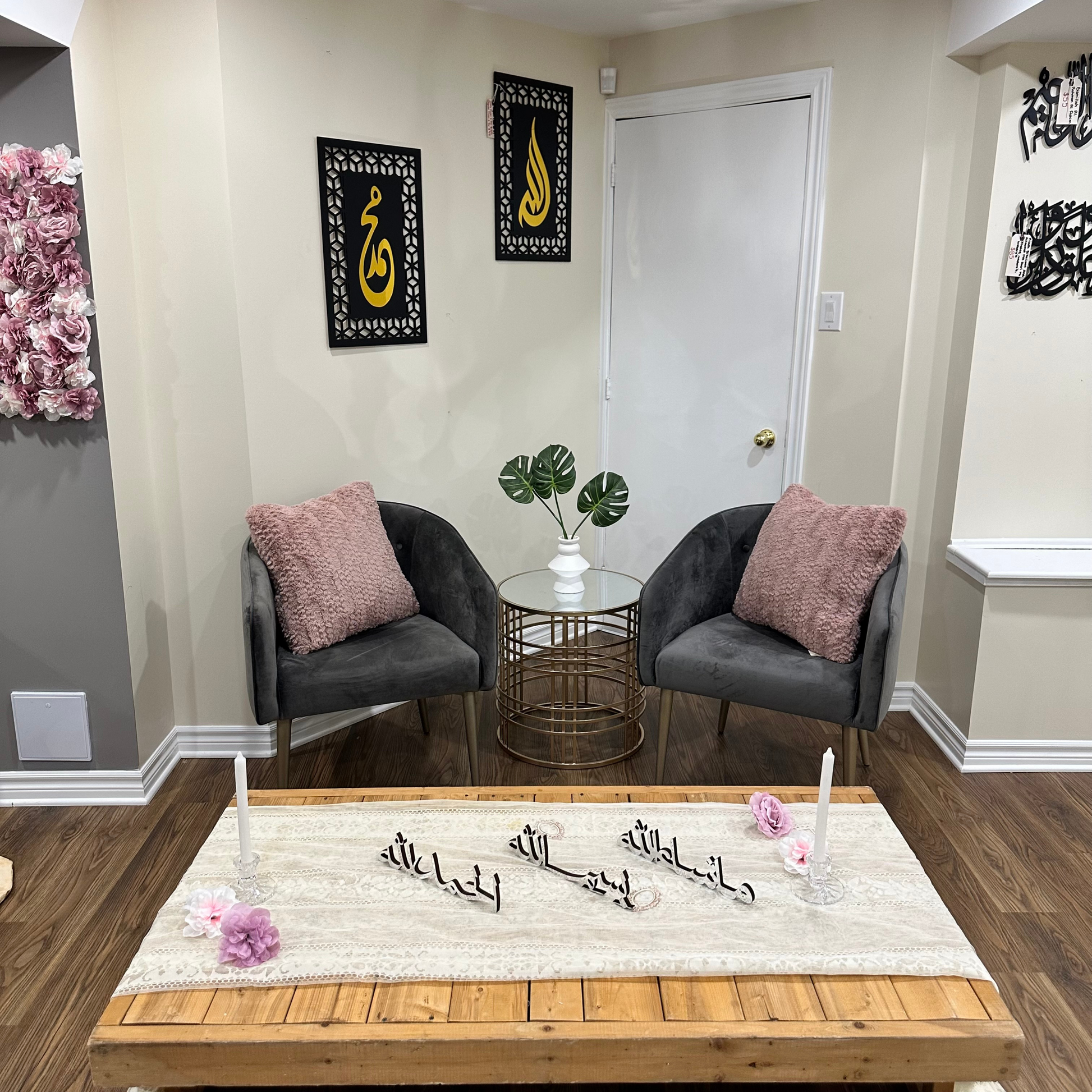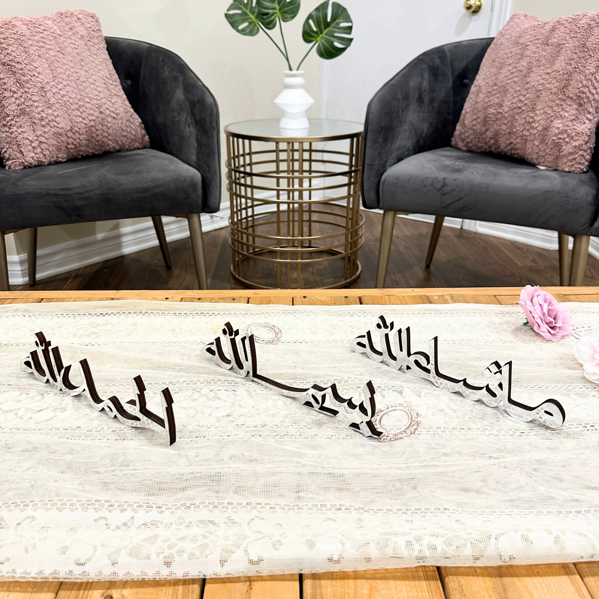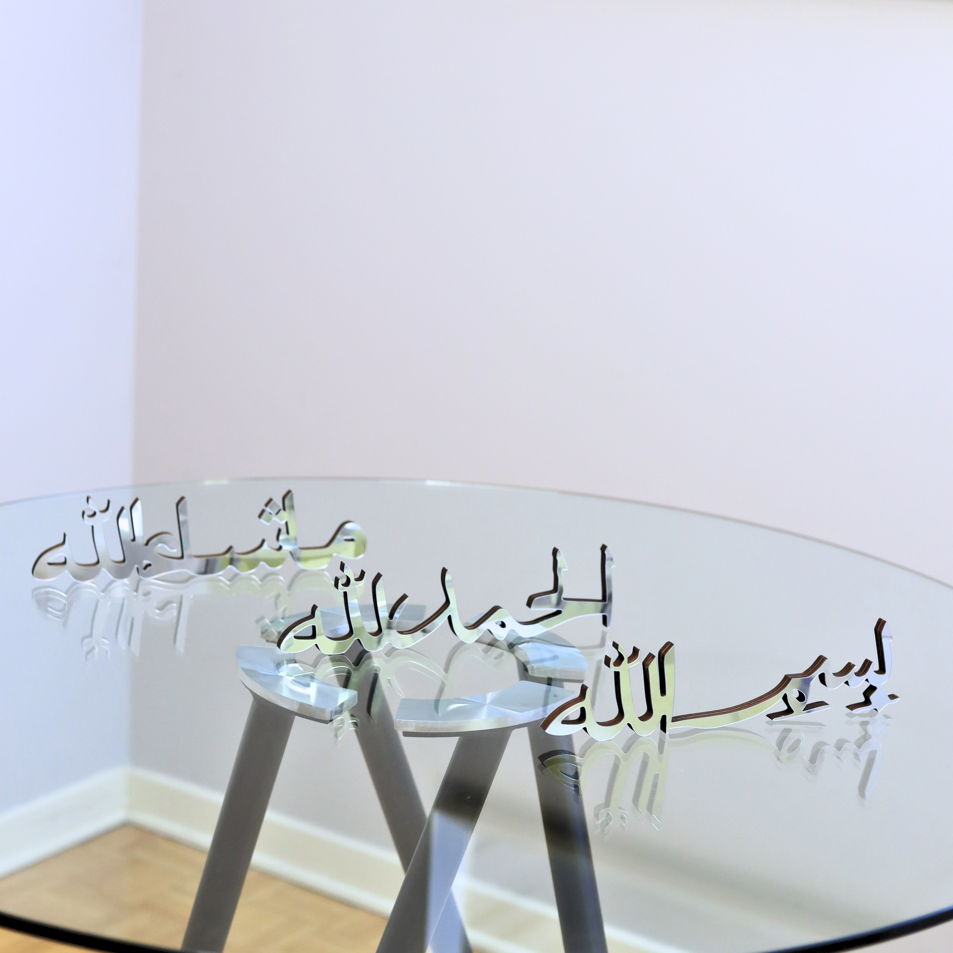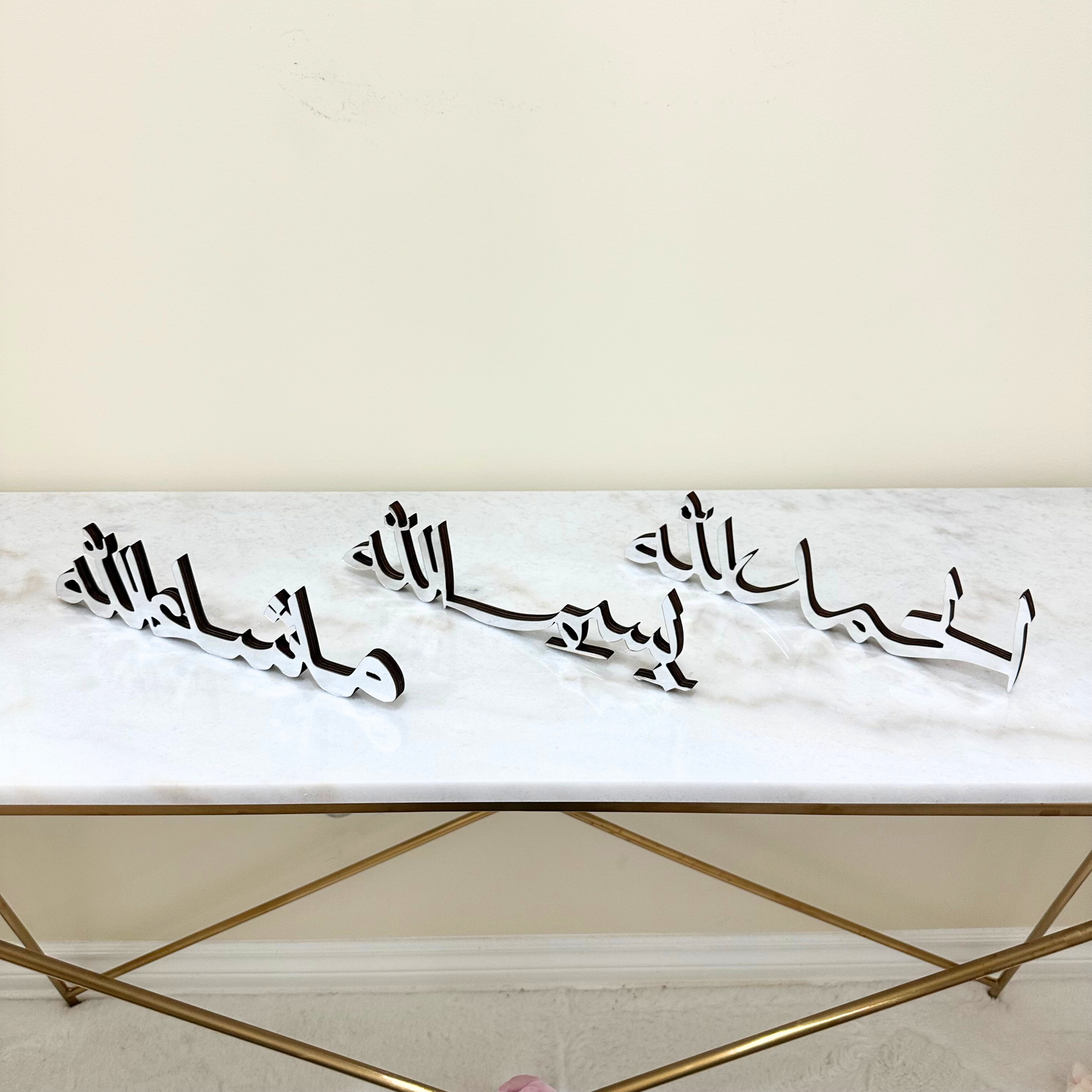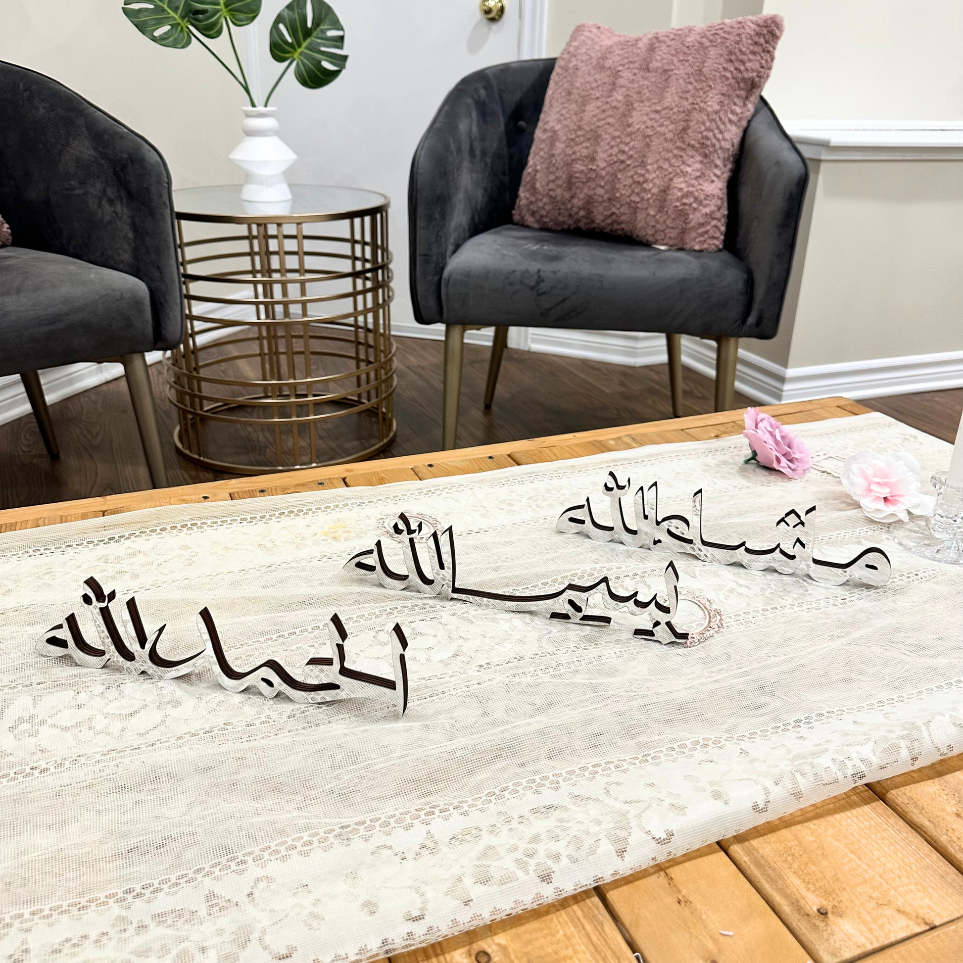 Bring depth, beauty, and spirituality to your home with this refined table decor set, featuring the sacred Arabic phrases: