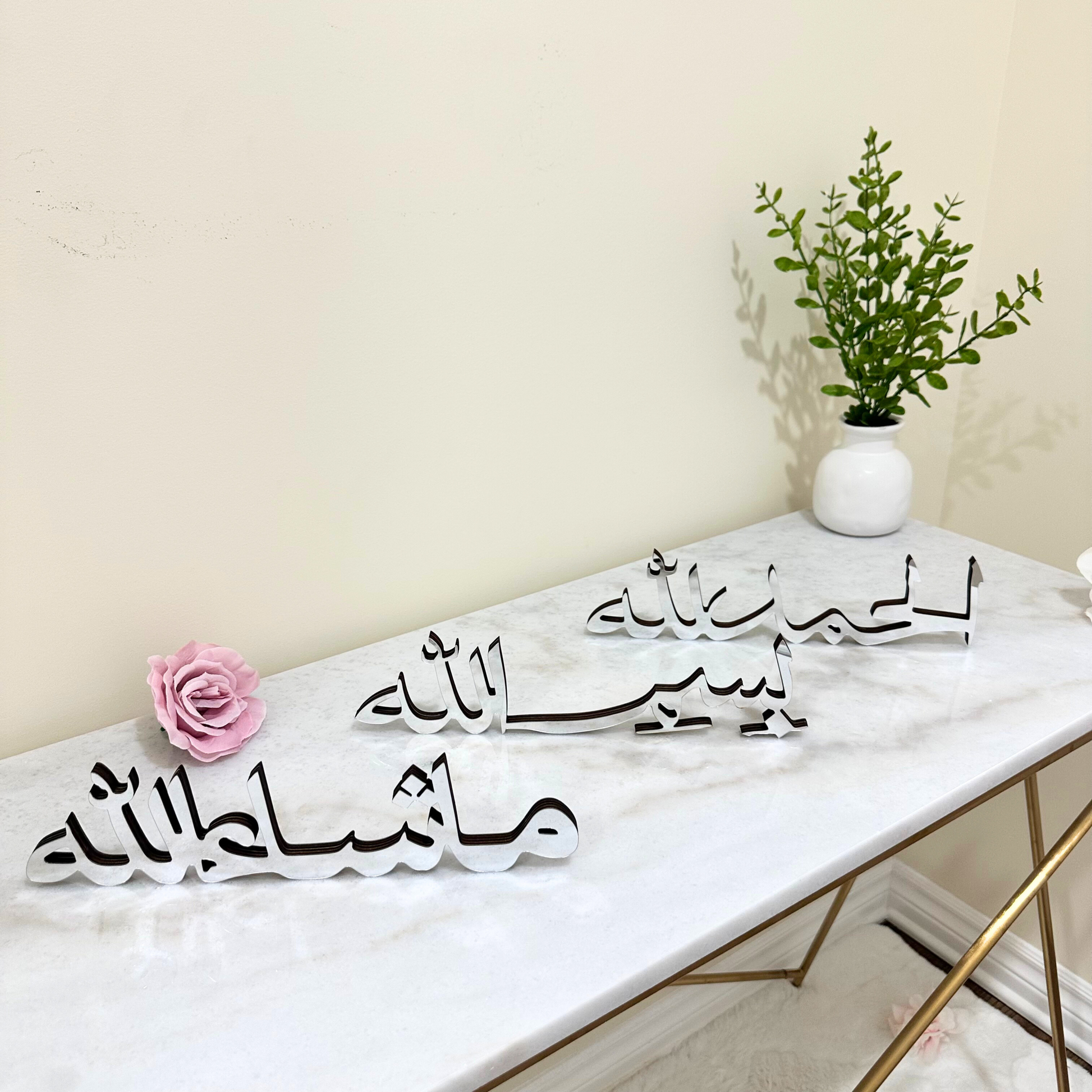 Stunning Silver Alhamdulillah, Bismillah, Mashallah Calligraphy Table Pieces Set of 3