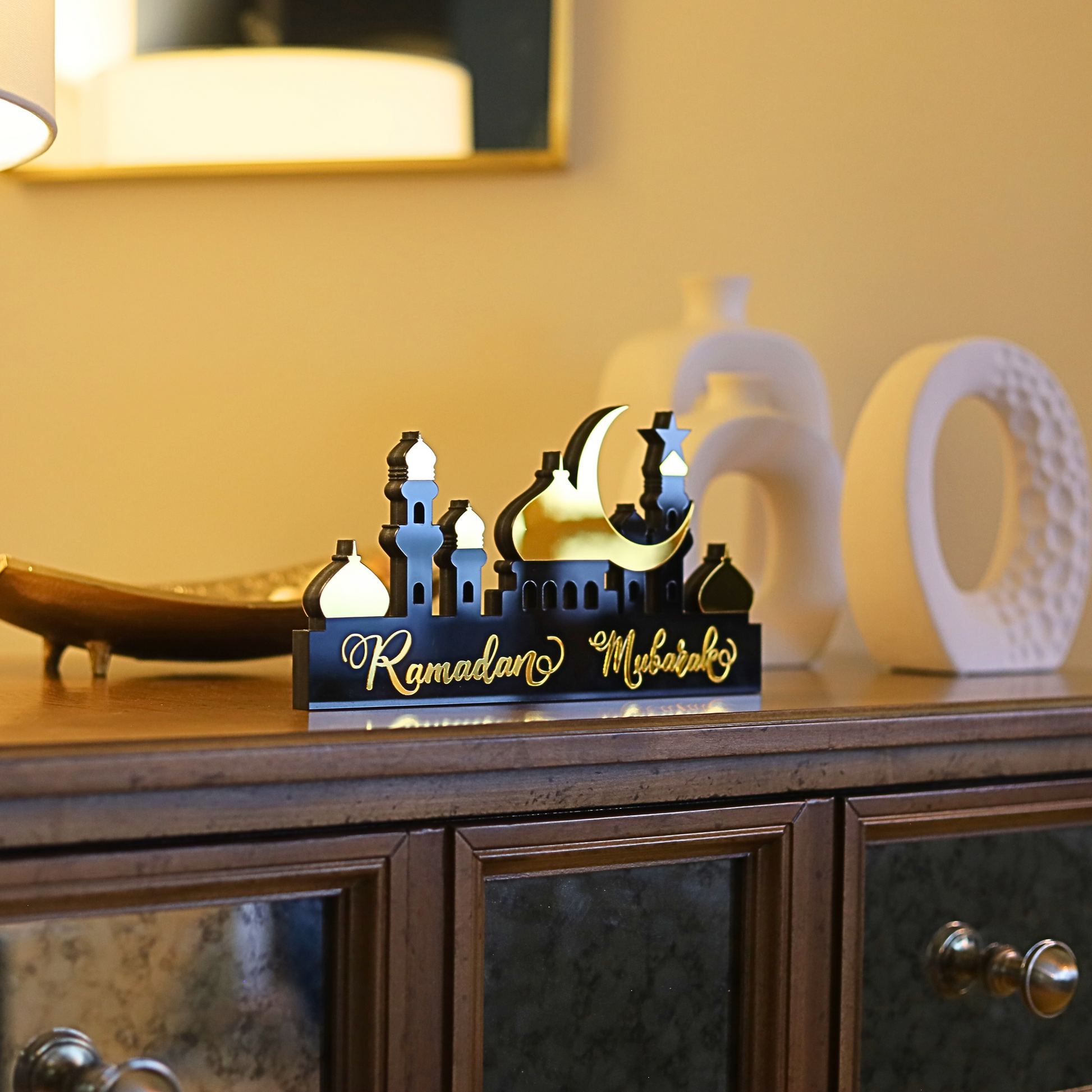 Stunning Ramadan Mubarak Two-Sided Mosque Table Decor