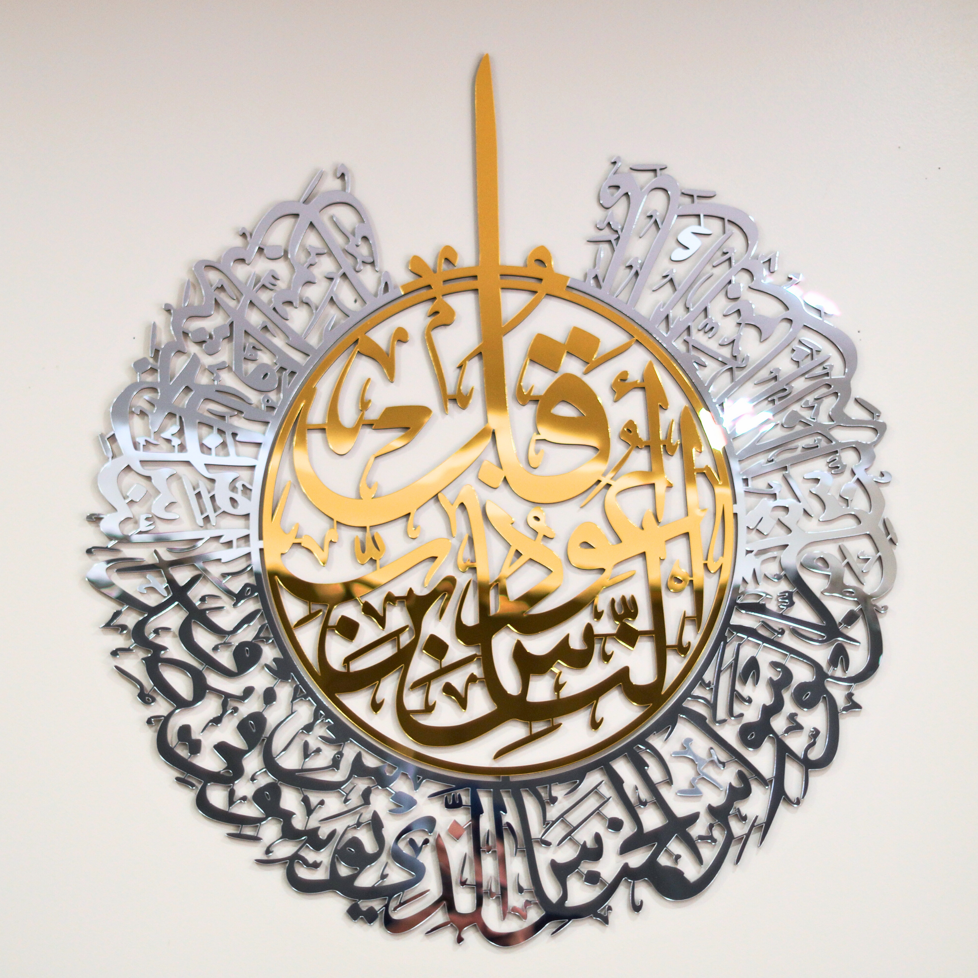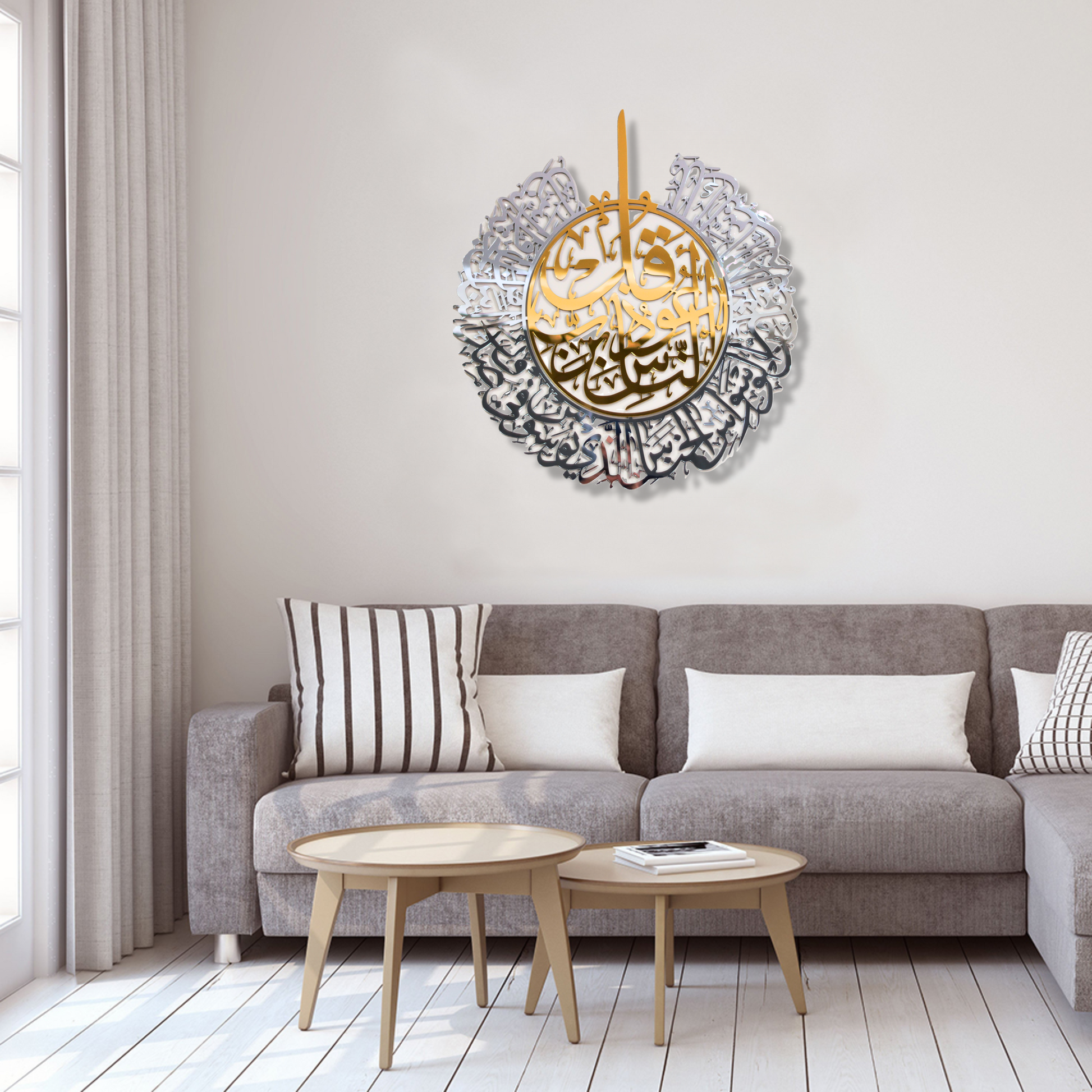 Surah Al Nas Calligraphy Wall Piece with Silver & Gold Mirror Finish