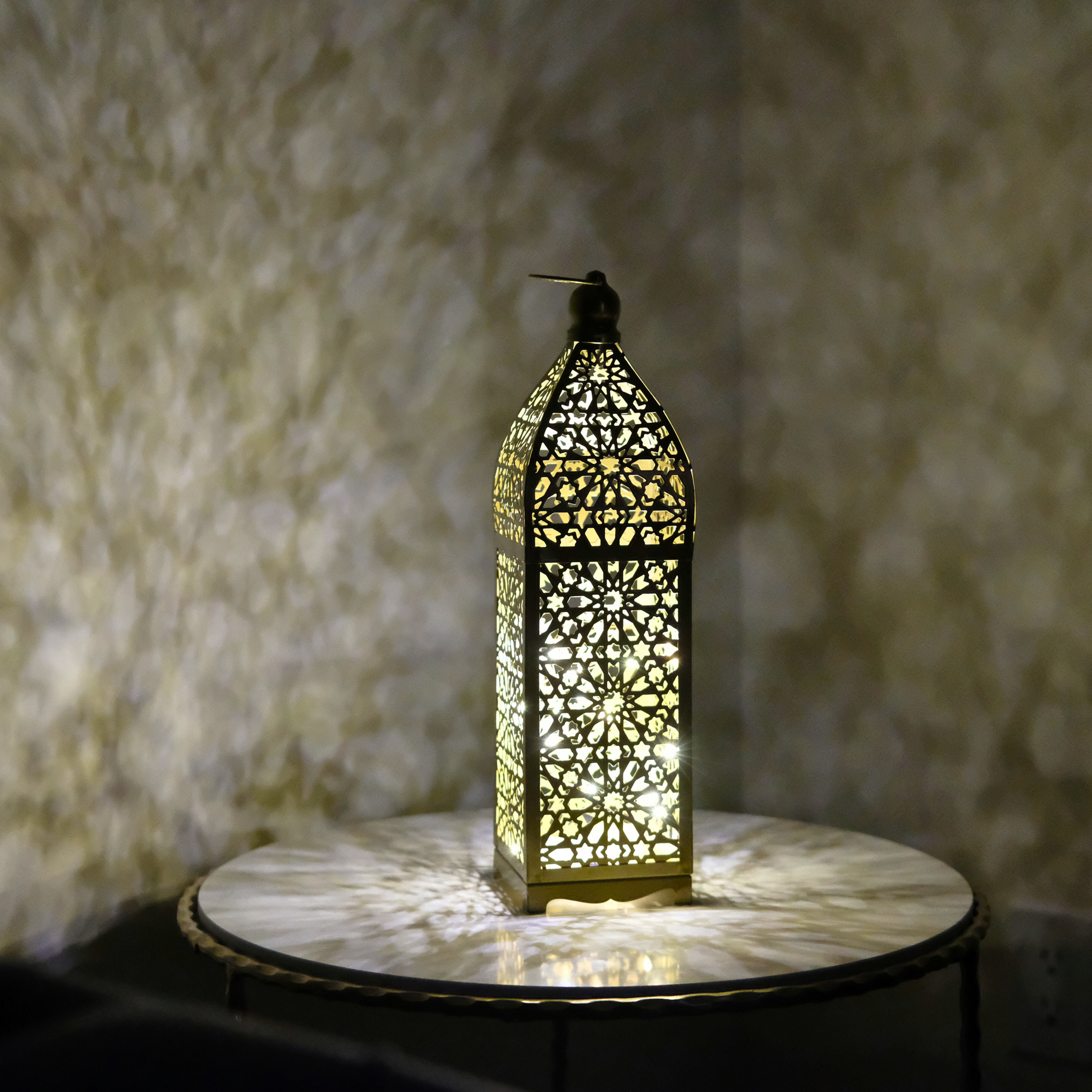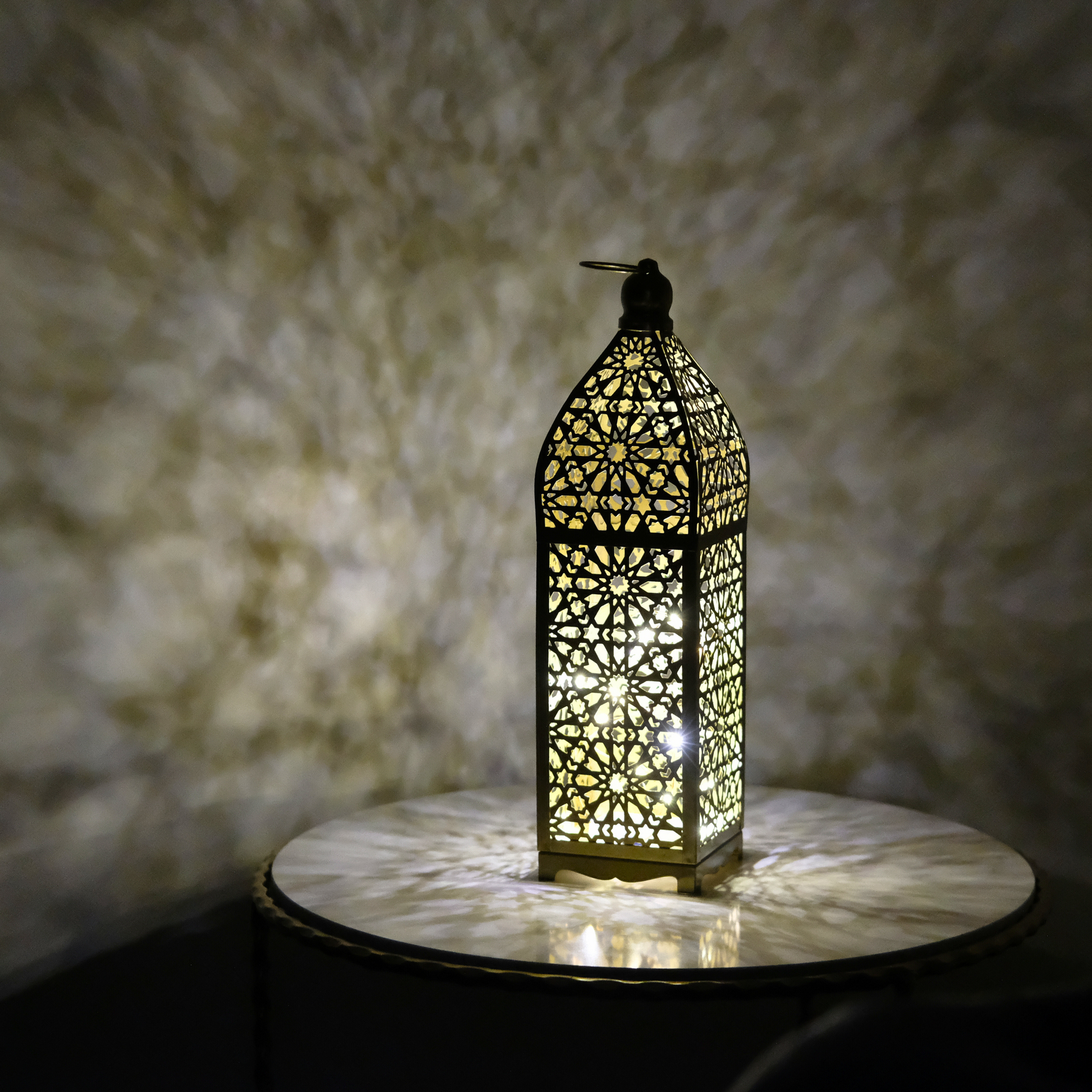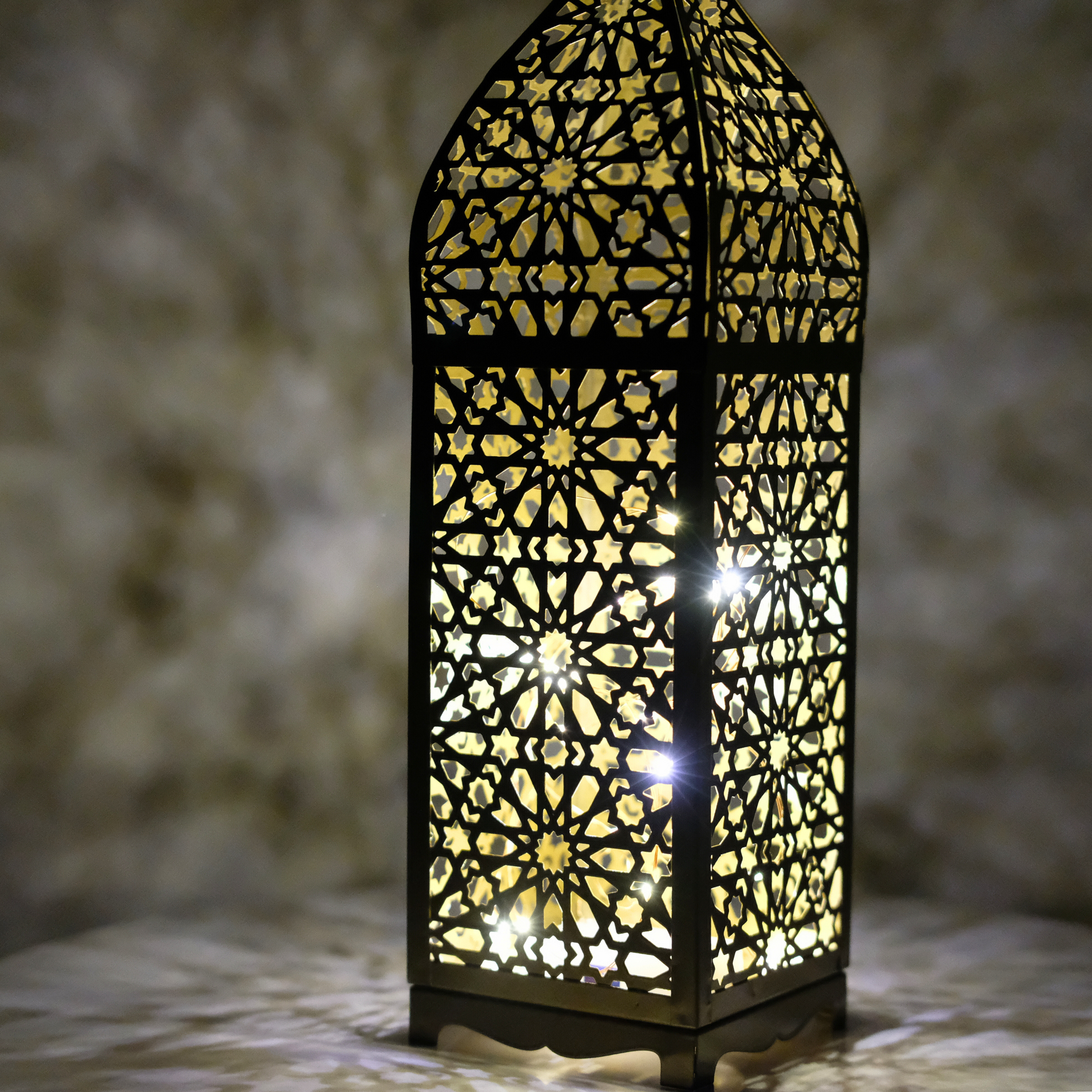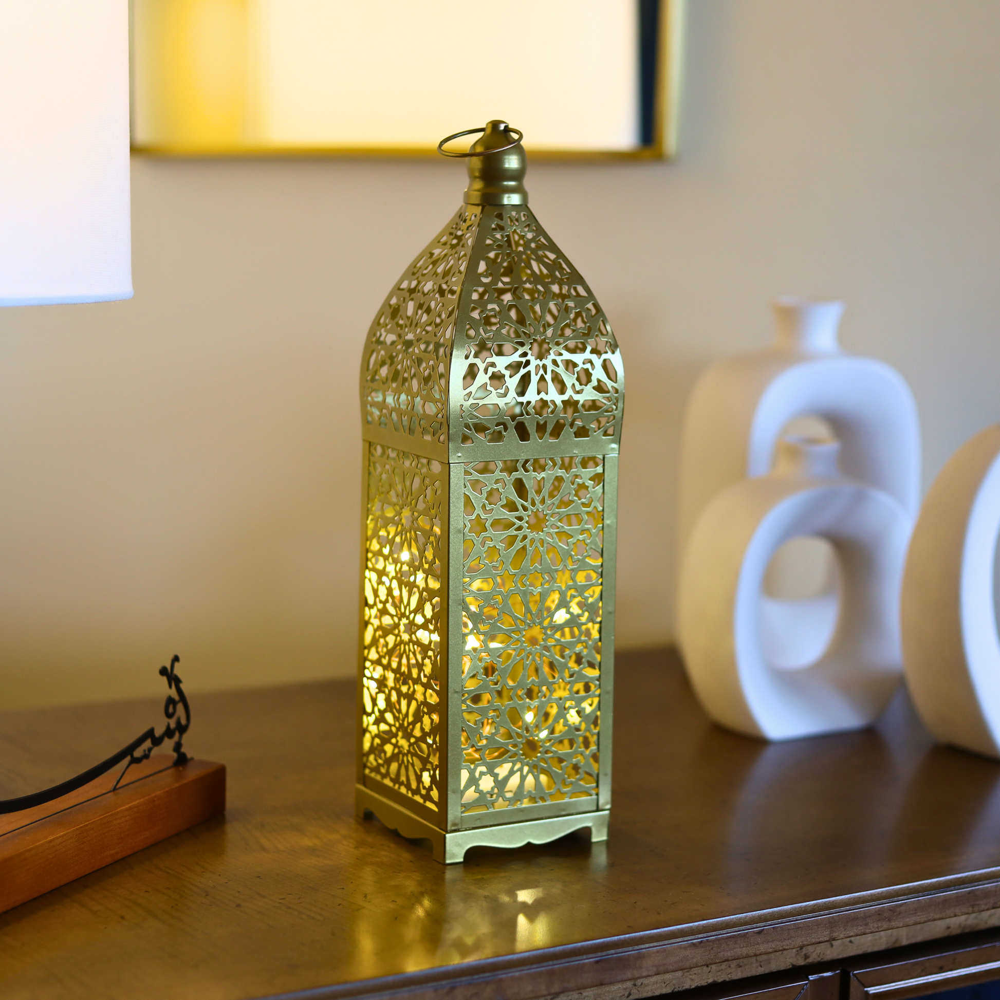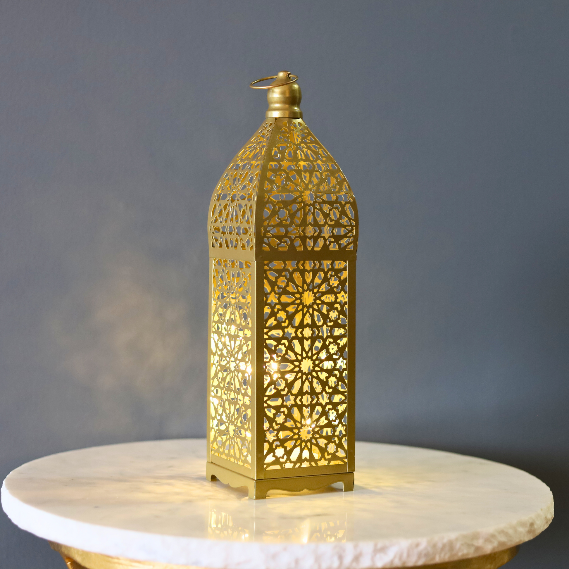 Stunning Gold Persian Pattern Metal Lantern with LED Lights